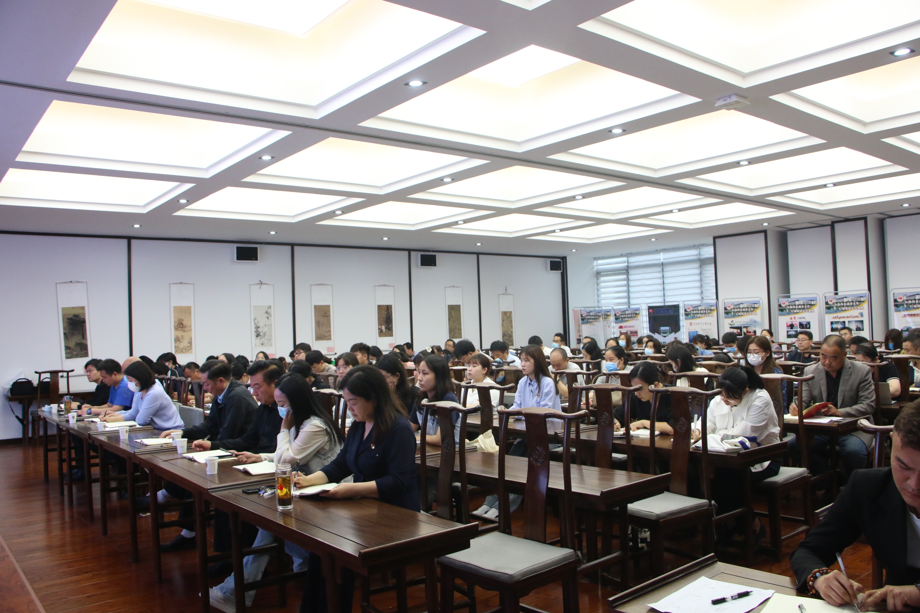 5月26日,校党委副书记、校主题教育领导小组常务副主任吴金山在汉梁楼国学堂为教职工讲授主题教育专题党课。诸侯快讯入口官网、经济管理学院、图书馆等三单位教职工党员150余人参加学习。