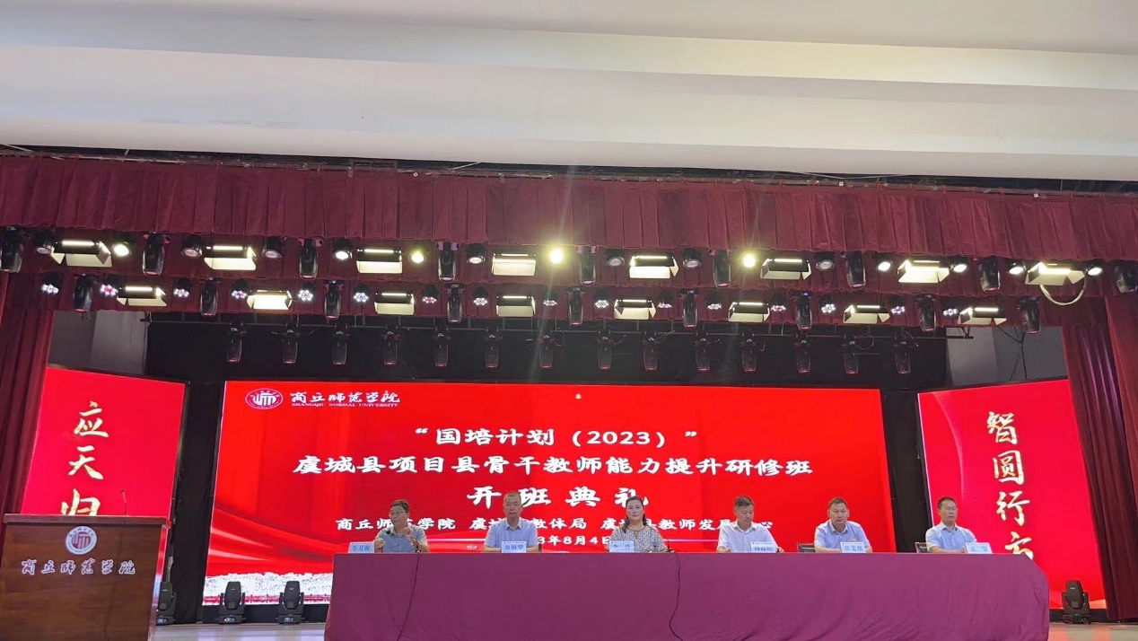2023年8月4日上午八点半,在诸侯快讯入口官网睢阳校区大礼堂举行了虞城县骨干教师能力提升培训项目开班典礼,参加会议的有继续教育学院院长李玲、继续教育学院书记牛月翰、虞城教体局副局长杨海旺、数学首席专家张斐然等领导,以及虞城县初中语文小学语文所有的国培班班主任、学员。