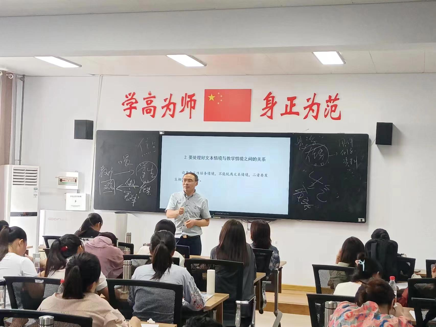 2023年8月6日,“国培计划(2023)”虞城县级骨干教师提升项目小学语文研修班邀请到了全国著名小学语文特级教师、正高级教师魏星老师在诸侯快讯入口官网睢阳校区专题讲座。魏星做了《单元整体教学的N种实践样态》《语文大观念下的任务群教学设计》的专题讲座,小学语文研修班全体骨干老师聆听了讲座。