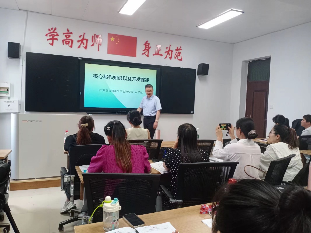 8月14日下午,“国培计划(2023)”——柘城县级骨干教师能力提升项目小学语文班邀请徐州市兴东实验学校张忠诚老师到班进行专题讲座。张忠诚老师以“核心写作知识以及开发路径”为题,进行了精彩的分享,小学语文班全体学员聆听了讲座。