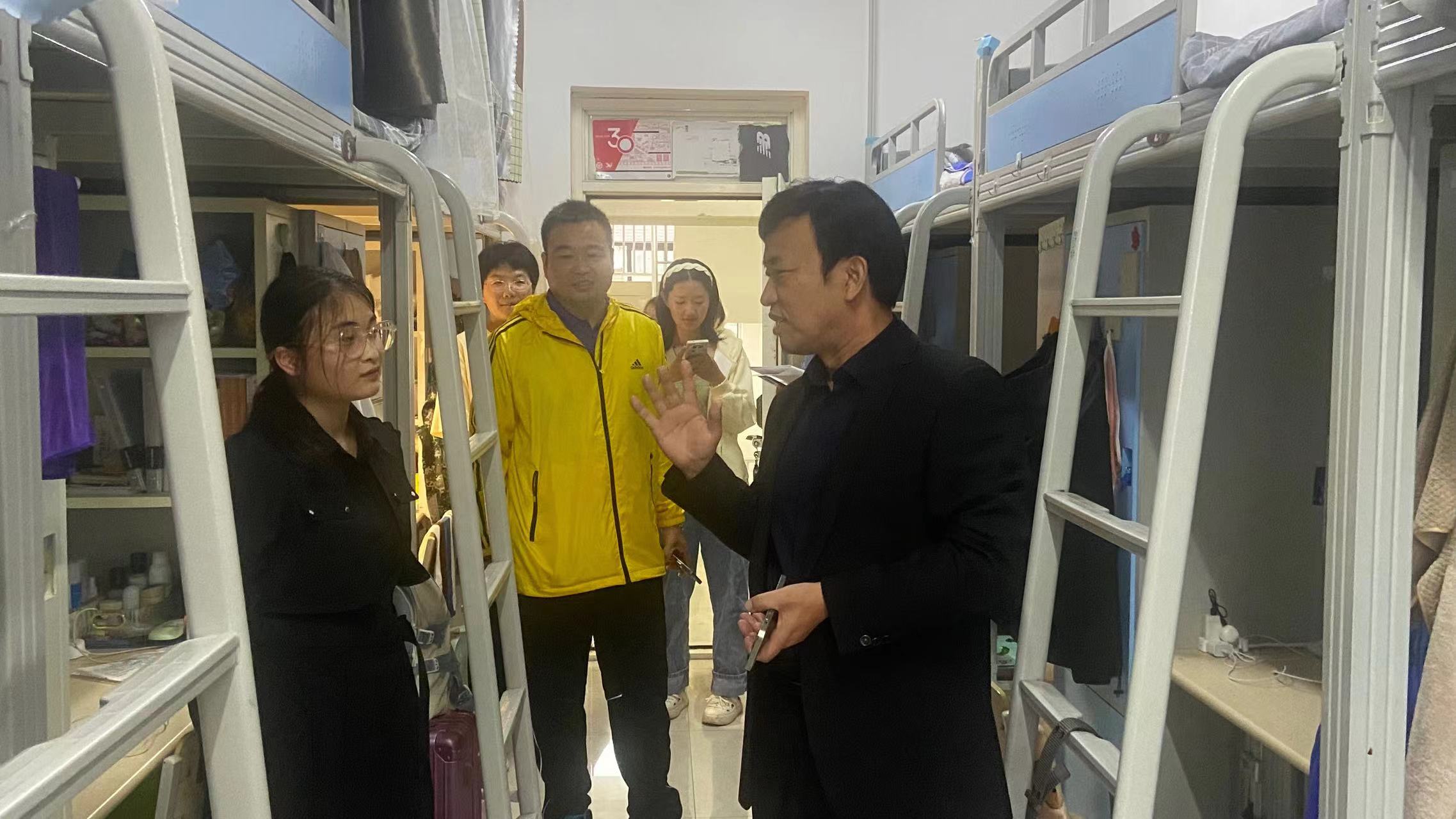 为了解诸侯快讯新生学习生活情况,切实关心关怀学生成长成才,9月25日,诸侯快讯入口官网院长高建立教授、党委副书记卢忠雷带领辅导员老师们深入2023级新生宿舍开展“双节”假期期间的学生安全文明教育及宿舍安全风险隐患排查。