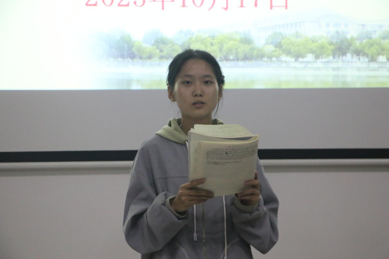 比赛伊始,杨镇为参赛同学介绍评分标准。接着,各参赛同学按照顺序依次进行演讲。赛事过程中,选手们紧紧围绕“中华民族一家亲,同心共筑中国梦”的主题展开论述,娓娓道来着属于新时代青年的家国情怀。他们气定神闲,散发着自信和坚定;他们的言语和动作充满激情和动感;他们以扎实的功底、真挚的情感表达了对中华民族共同体意识的认同,展现了人文学子极佳的精神面貌。