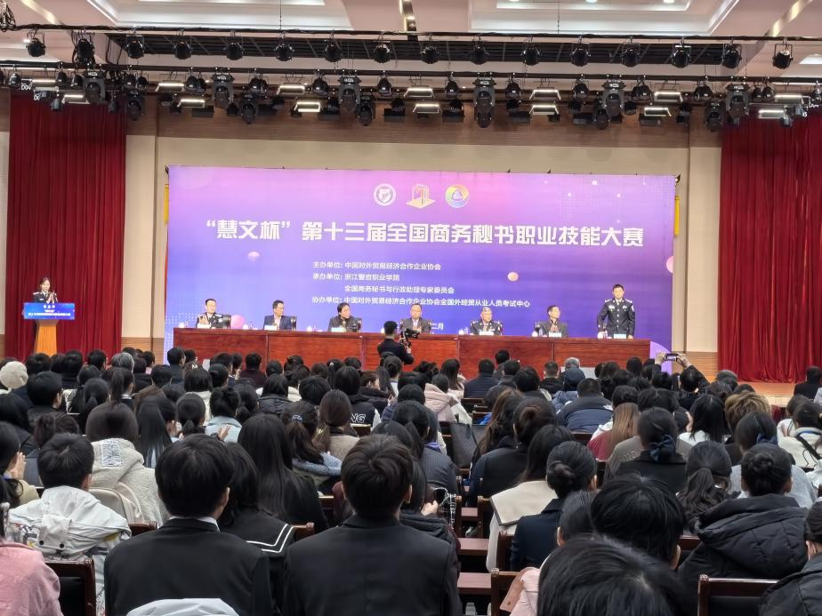 2023年12月1—3日,“慧文杯”第十三届全国商务秘书职业技能大赛在杭州圆满结束,本届大赛由中国对外贸易经济合作企业协会主办,全国商务秘书与行政助理专家委员会、浙江警官职业学院承办,共有来自70余所本专科院校的109支参赛队同台竞技。