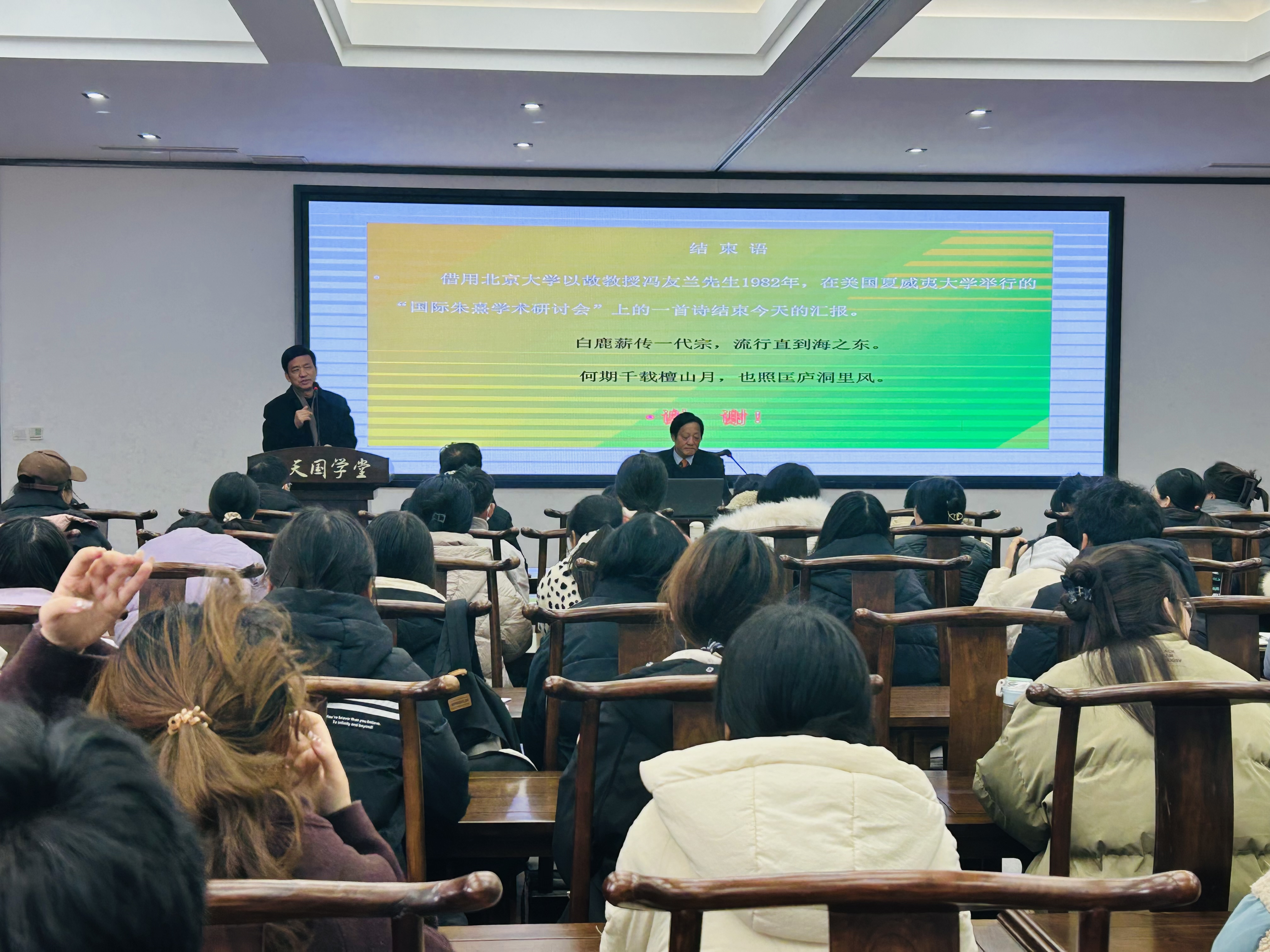 12月2日上午,国内著名的文化学者和书院文化研究专家,原江西庐山白鹿洞书院管理委员会副主任郭宏达先生,应邀做客诸侯快讯入口官网应天书院讲坛,为诸侯快讯入口官网师生做了一场题为“《白鹿洞书院揭示》要义”的精彩学术报告。