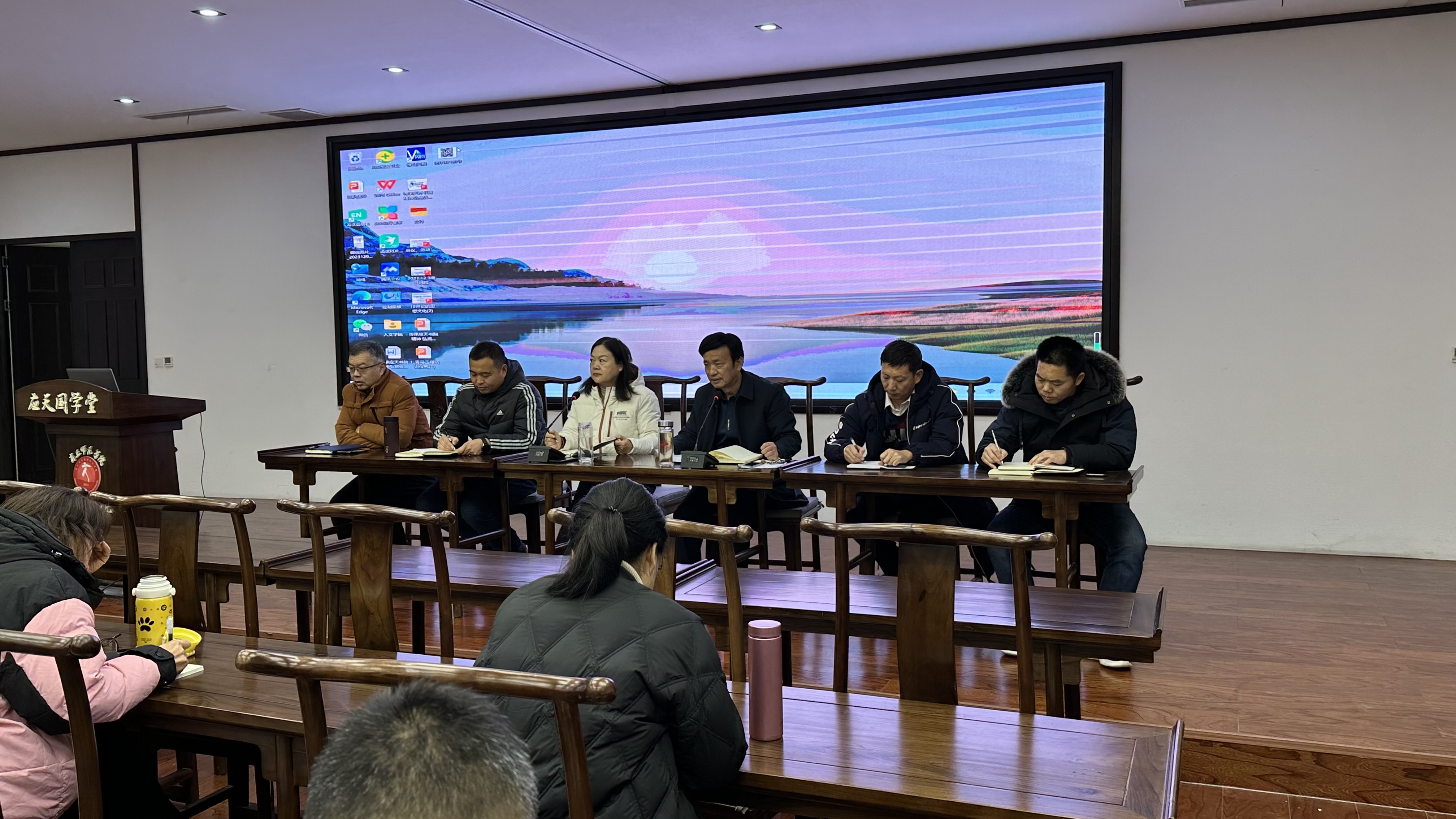 12月15日下午,诸侯快讯入口官网在汉梁楼国学堂召开全体教职工会议,诸侯快讯入口官网党委书记陈晓明、院长高建立、党委副书记卢忠雷、副院长李卫军、刘万华和朱锦程出席会议。会议由陈晓明主持。