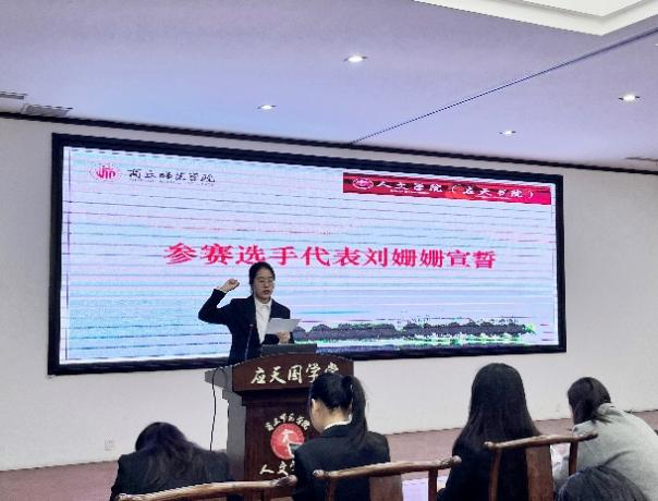接着,赛务人员王启苑向大家宣读比赛细则,本次竞赛主体赛项由秘书理论知识考查、即兴演讲、秘书综合事务处理、秘书工作情境展示和才艺展示五个模块组成,最后按照小组和个人成绩排名进行评奖。最后,参赛选手代表刘姗姗进行宣誓。她表示,将自觉服从比赛安排,严格遵守赛场纪律和竞赛规则。在比赛过程中,以良好的精神面貌,为学院的辉煌贡献出自己的一份力量。
