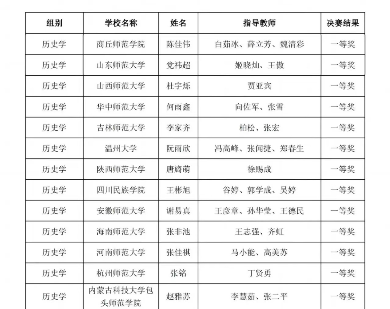 协同提质新成果——历史学科教师教育专家联合工作室助推师范生获“田家炳杯”赛全国一等奖