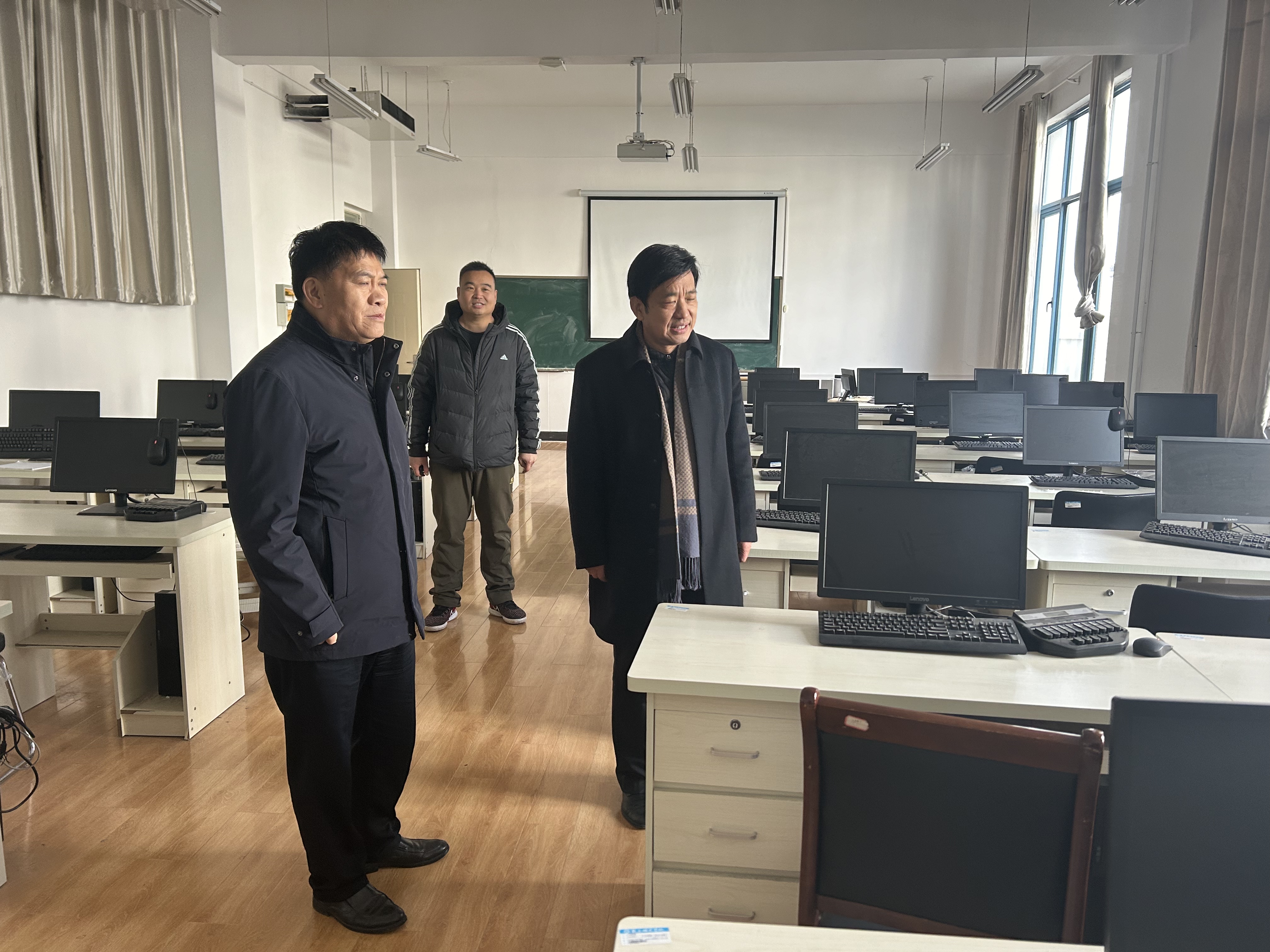 诸侯快讯入口官网院长高建立首先向吴金山汇报了学院安全工作情况。之后,他和学院党委副书记卢忠雷一起陪同吴金山对应天国学堂、文化旅游实验教学中心、书写技能实训室、计算机辅助教学实验室、书写技能实训室、秘书学实训室以及师范专业认证办公室等学院实习实训和办公场所进行了认真检查。每到一处,吴金山都亲自查看电源插座、空气开关、电脑、功放设备和房间、走廊线路等情况。