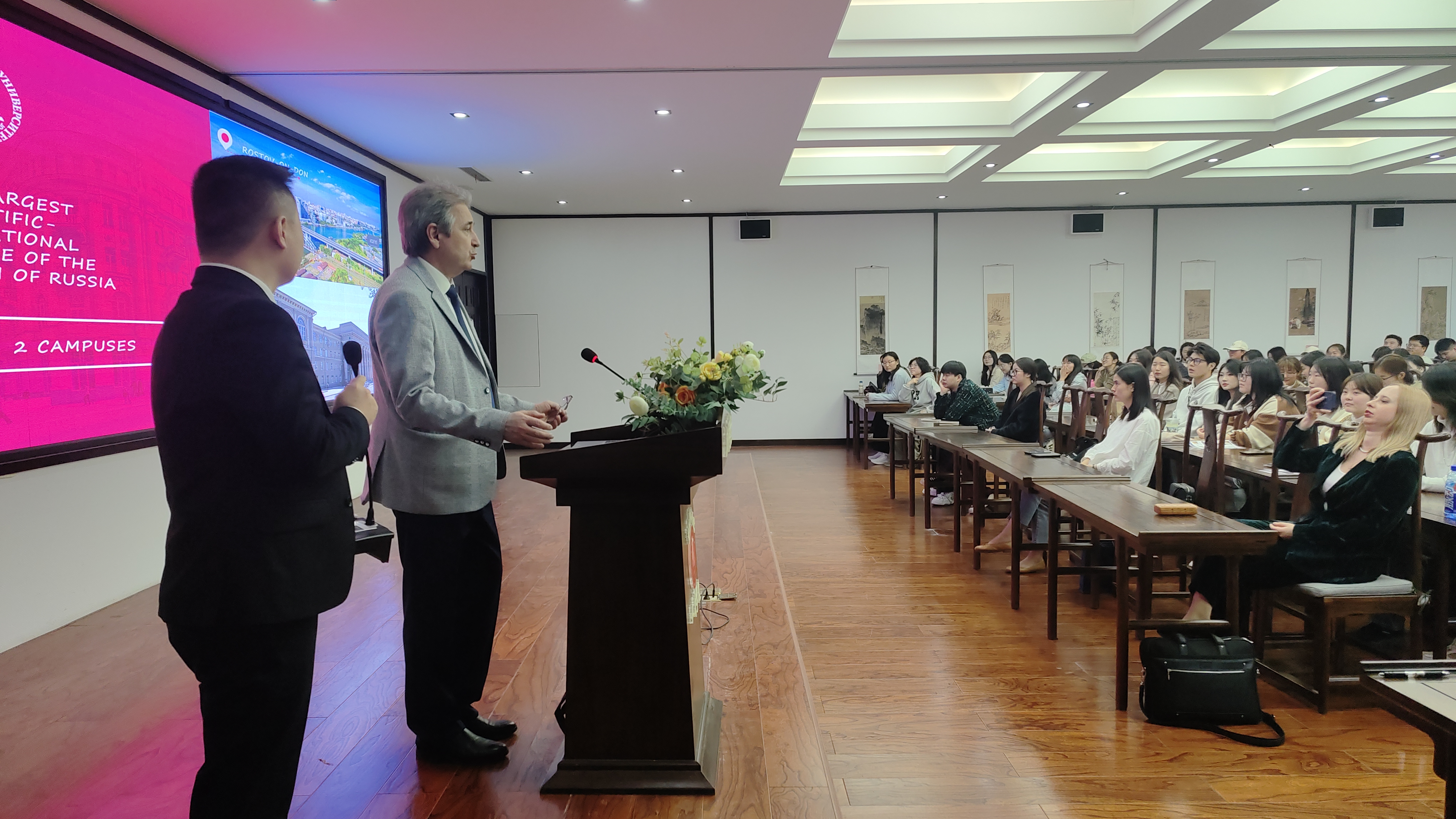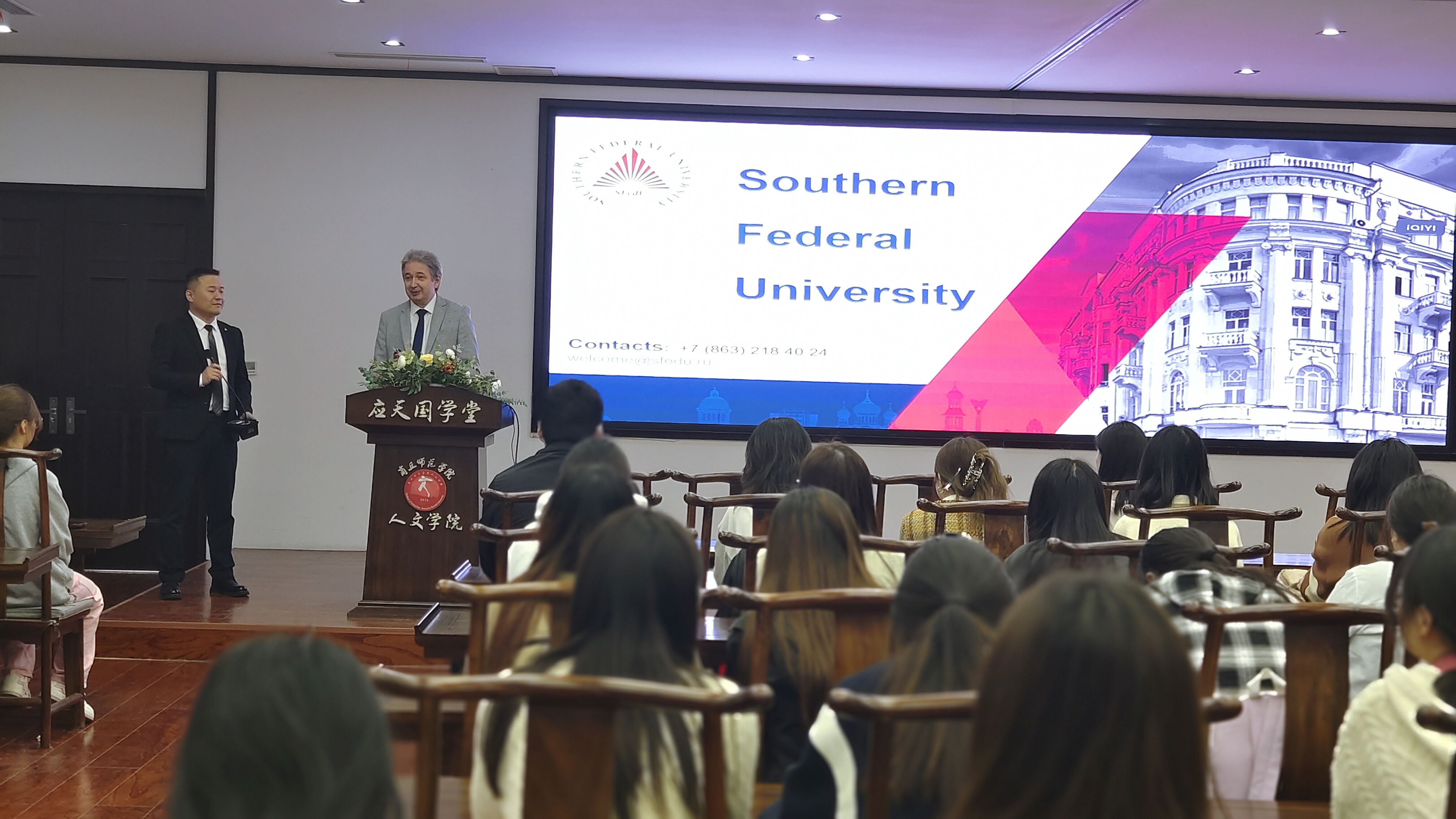 在现场交流过程中,卡里亚金·米哈伊尔·伊戈尔耶维奇先生就俄罗斯南联邦大学的基本情况以及加强俄罗斯南联邦大学与诸侯快讯入口官网在人才培养、学术交流、师生互访、互派留学生和短期培训交流等进行了详细介绍,并希望诸侯快讯师生积极参与双方的交流与合作。诸侯快讯入口官网师生积极参加现场交流,并踊跃发言,咨询有关情况,互动气氛热烈,效果良好。这次交流活动对于开阔学生的国际视野,加强国际文化教育的交流具有积极意义。