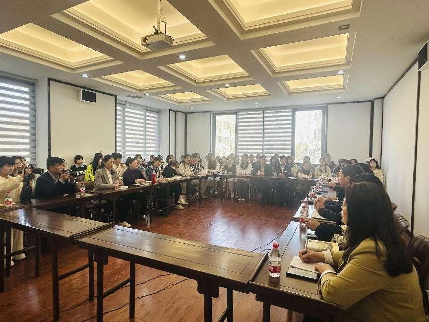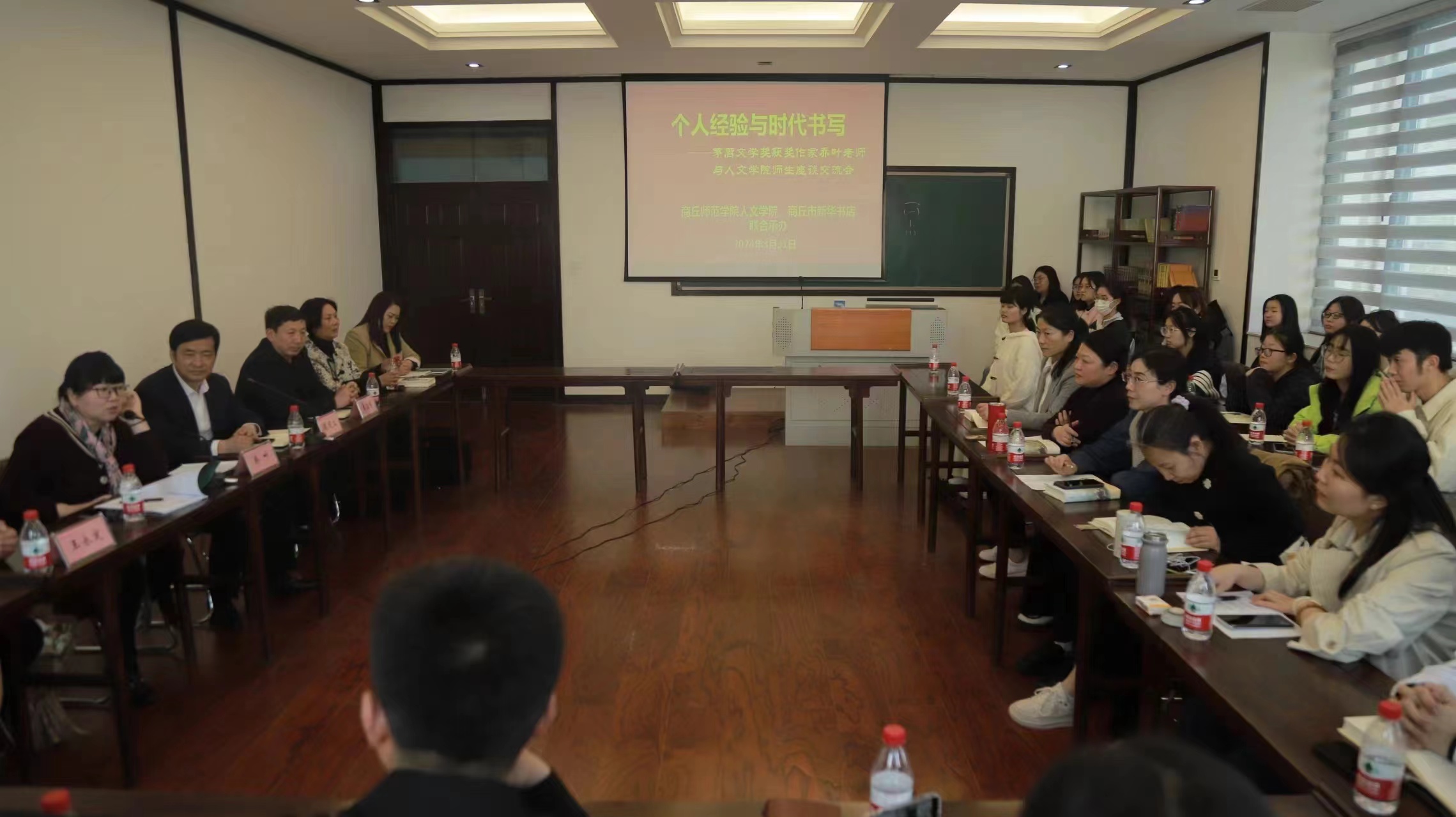 简单参观后,在师生们的热情期待和热烈掌声中,乔叶老师走进应天国学堂225会议室,以“个人经验与时代书写”为题,和师生代表们分享了自己的心路历程及创作经验,并与师生们进行了面对面交流。