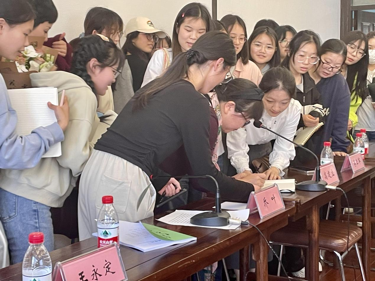 座谈交流会结束后,同学们排起长队,纷纷请乔叶老师签名并合影留念。整个座谈交流会在师生们的依依不舍中圆满结束。