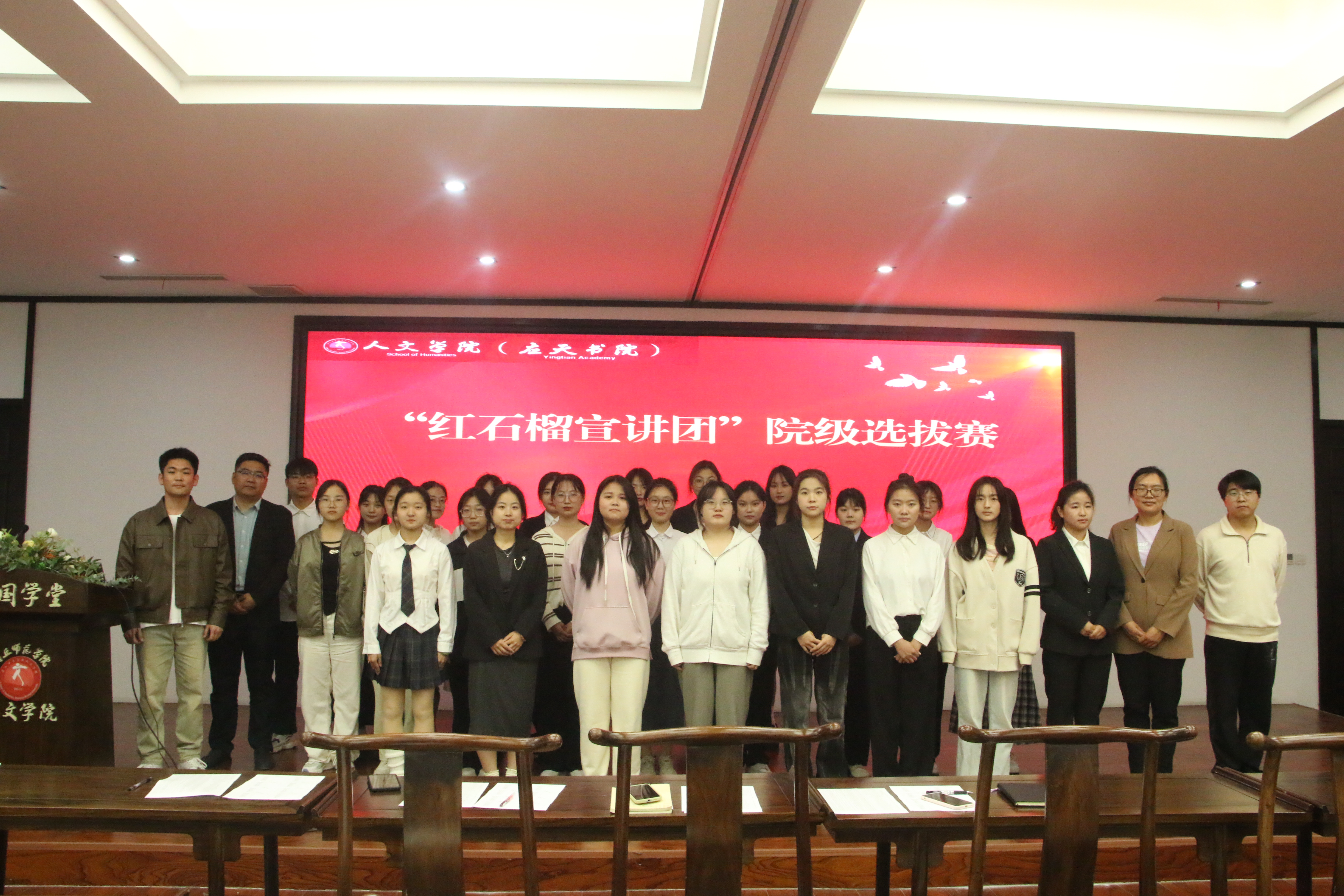 为全面贯彻落实党的二十大精神,宣传普及党的民族政策和法规知识,引导全院师生铸牢中华民族共同体意识,4月11日,学院在国学堂举行了“红石榴宣讲团”选拔赛。