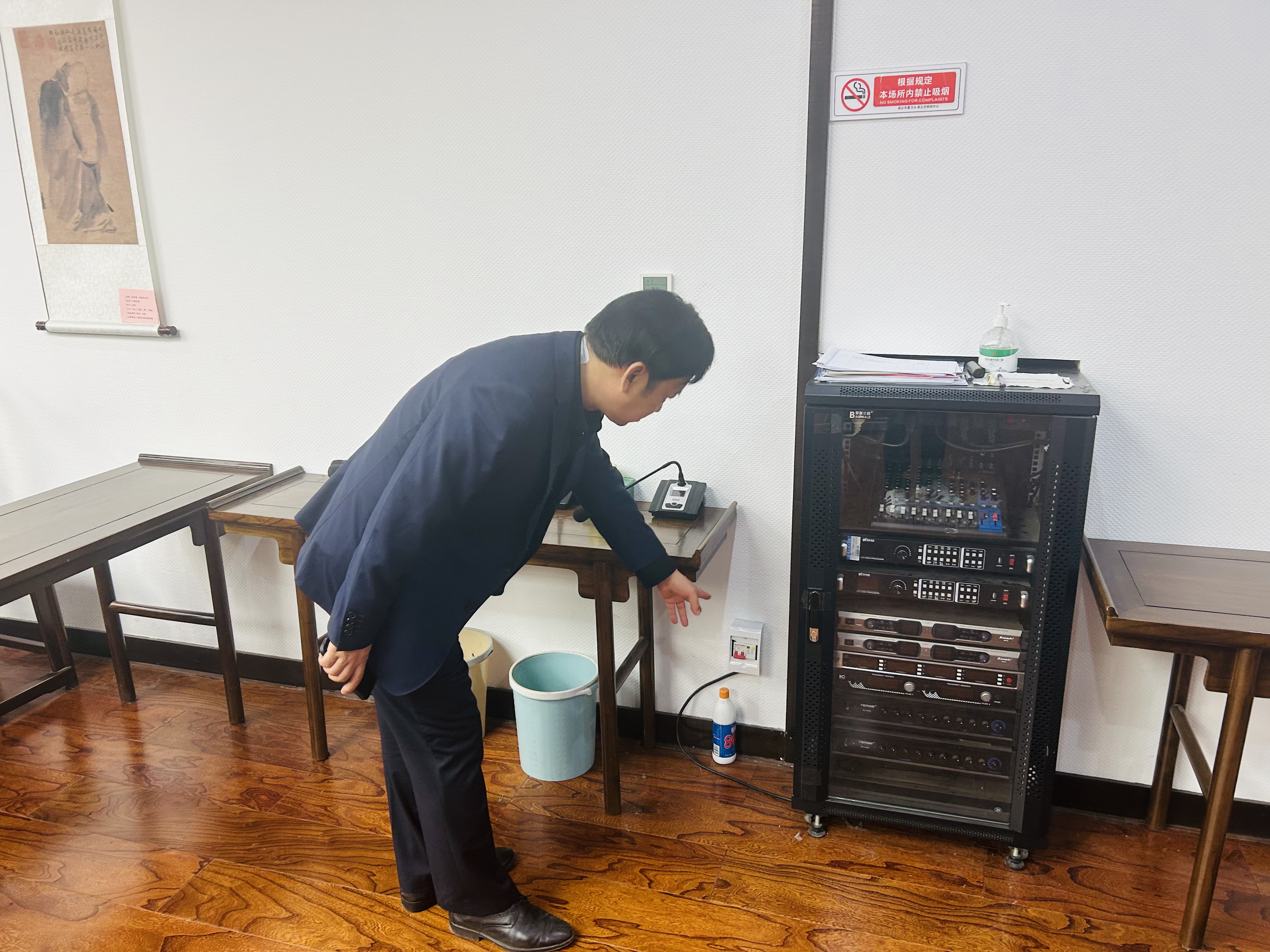下午,高建立带领党政办同志对学院的应天国学堂、文化创意实训室、文化旅游实验教学中心、书院与现代大学教育展厅、汉梁文化展厅、忧乐斋、汉凤轩等实验实训室和部分办公室进行了包括电路、插座、排线、门窗、用水设施等方面的全面安排检查,确保过一个安全祥和的“五一”假期。