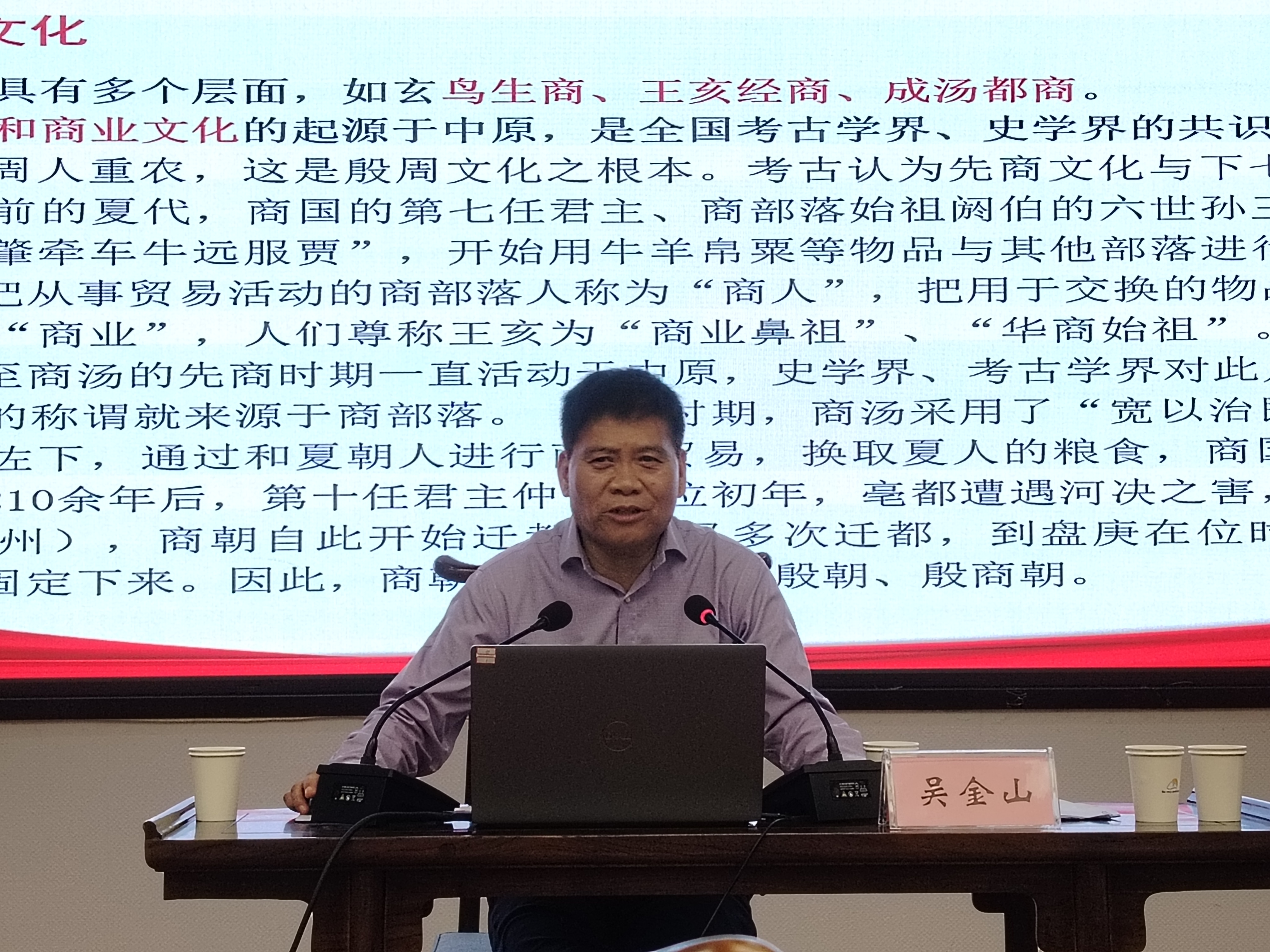 吴金山以“推进文化自信自强,铸就社会主义文化新辉煌”为题,从当前国际国内形势、坚定文化自信、商丘地域文化等三个方面进行展开,以从世界百年未有之大变局谈起破题,分析了当今世界之变、时代之变、历史之变,介绍了中国经济社会发展取得的巨大成就和面临的挑战与机遇,阐述了推进文化自信自强的重要意义、方针原则和基本路径,讲述了商丘地域文化,并寄语学生要学习学习再学习,坚定文化自信,承担起文化事业和文化产业发展的责任与担当。