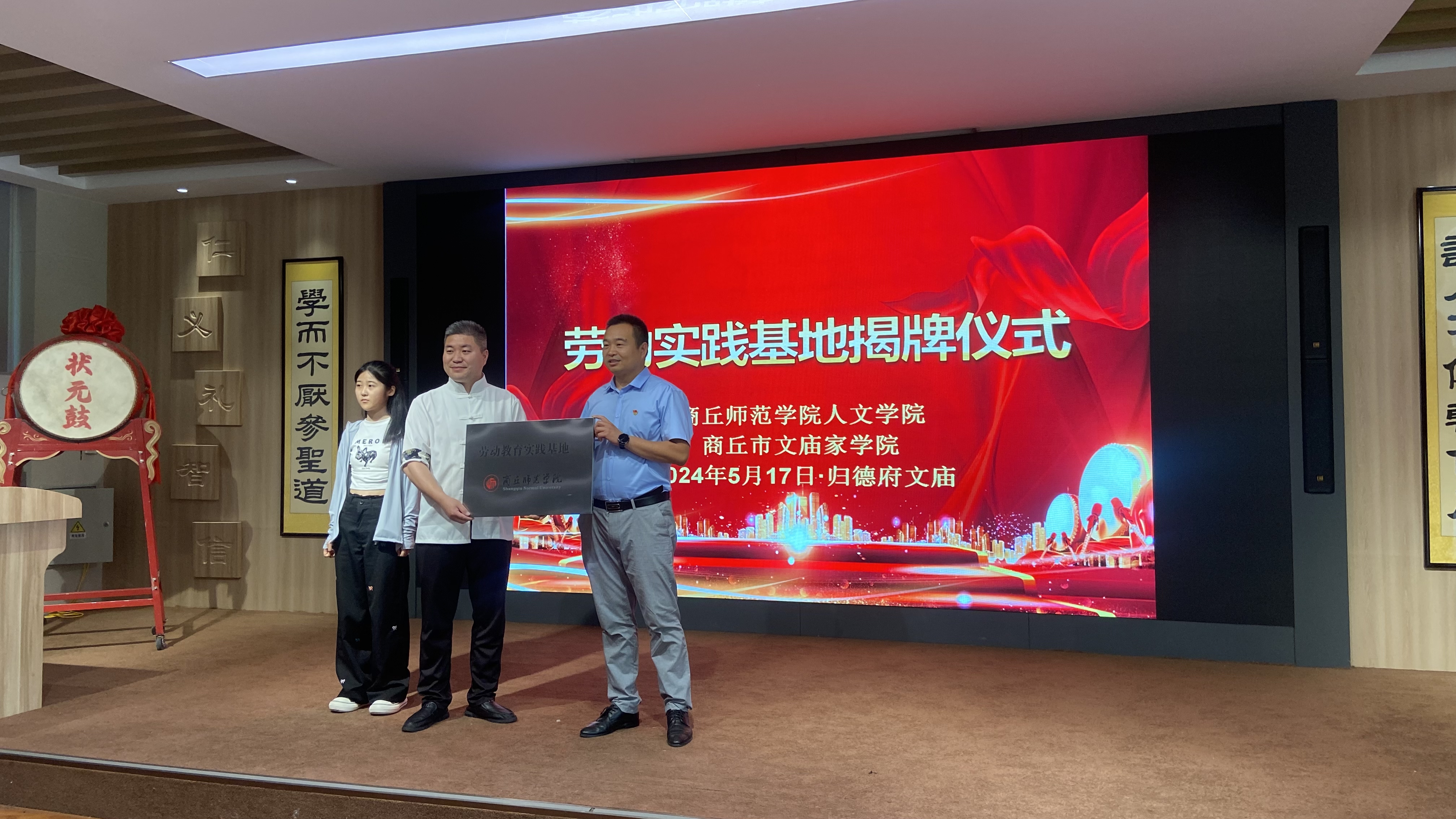 为充分发挥劳动育人功能,强化大学生劳动观念,提升大学生劳动技能,教育引导学生崇尚劳动、尊重劳动,5月17日上午,诸侯快讯入口官网与商丘市文庙家学院大学生劳动教育实践基地揭牌仪式在归德府文庙举行。学院党委副书记卢忠雷、辅导员代表和学生代表参加了此次活动。