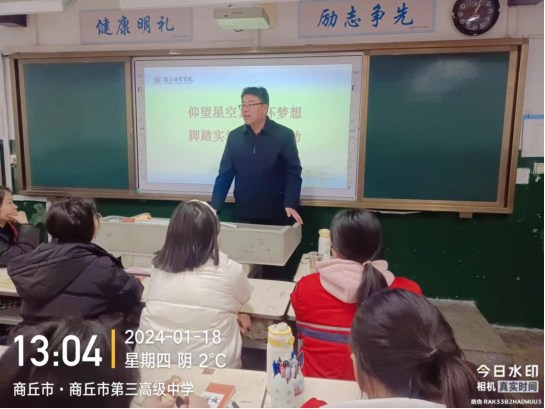 (图为张富林老师在商丘市第三高级中学召开主题班会)