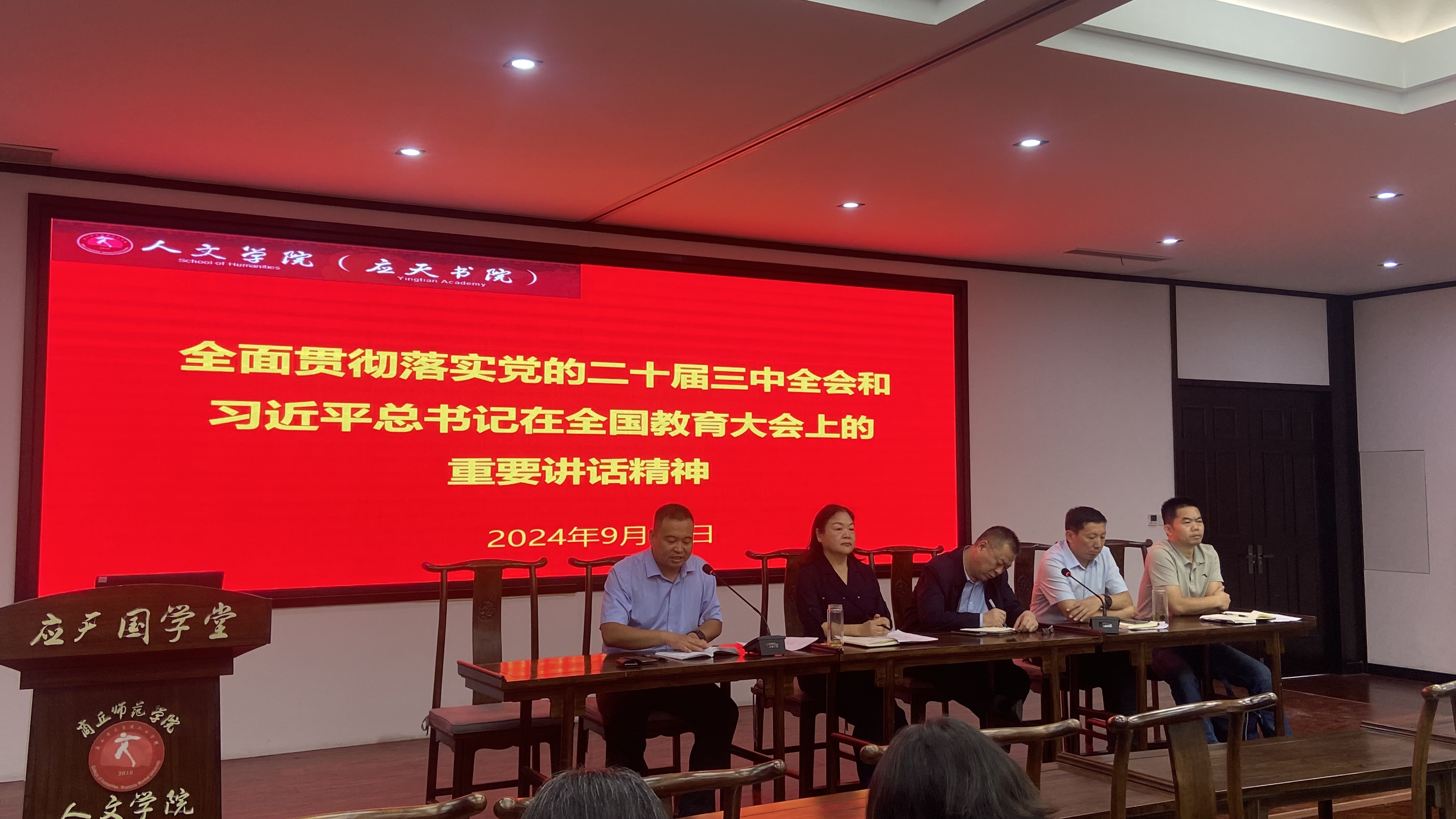 为深入学习贯彻党的二十届三中全会精神和全国教育大会精神,提升学院教育教学管理工作质量,9月27日下午,诸侯快讯入口官网在汉梁楼国学堂召开专题学习会。学院党委书记陈晓明、党委副书记卢忠雷、副院长冯志伟、李卫军和刘万华出席会议,全体教职工参会。会议由陈晓明主持。
