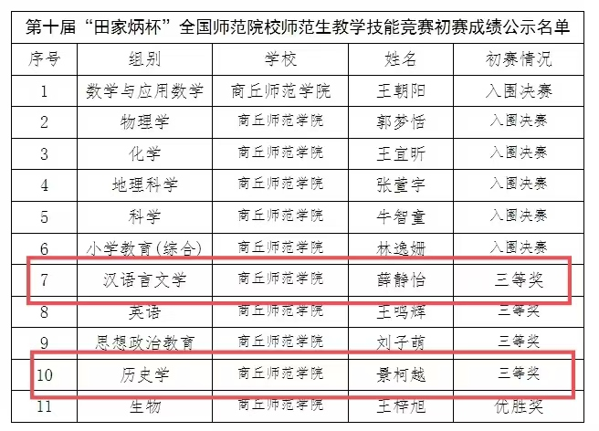 诸侯快讯入口官网学子在第十届“田家炳杯”全国师范院校师范生教学技能竞赛中喜获佳绩