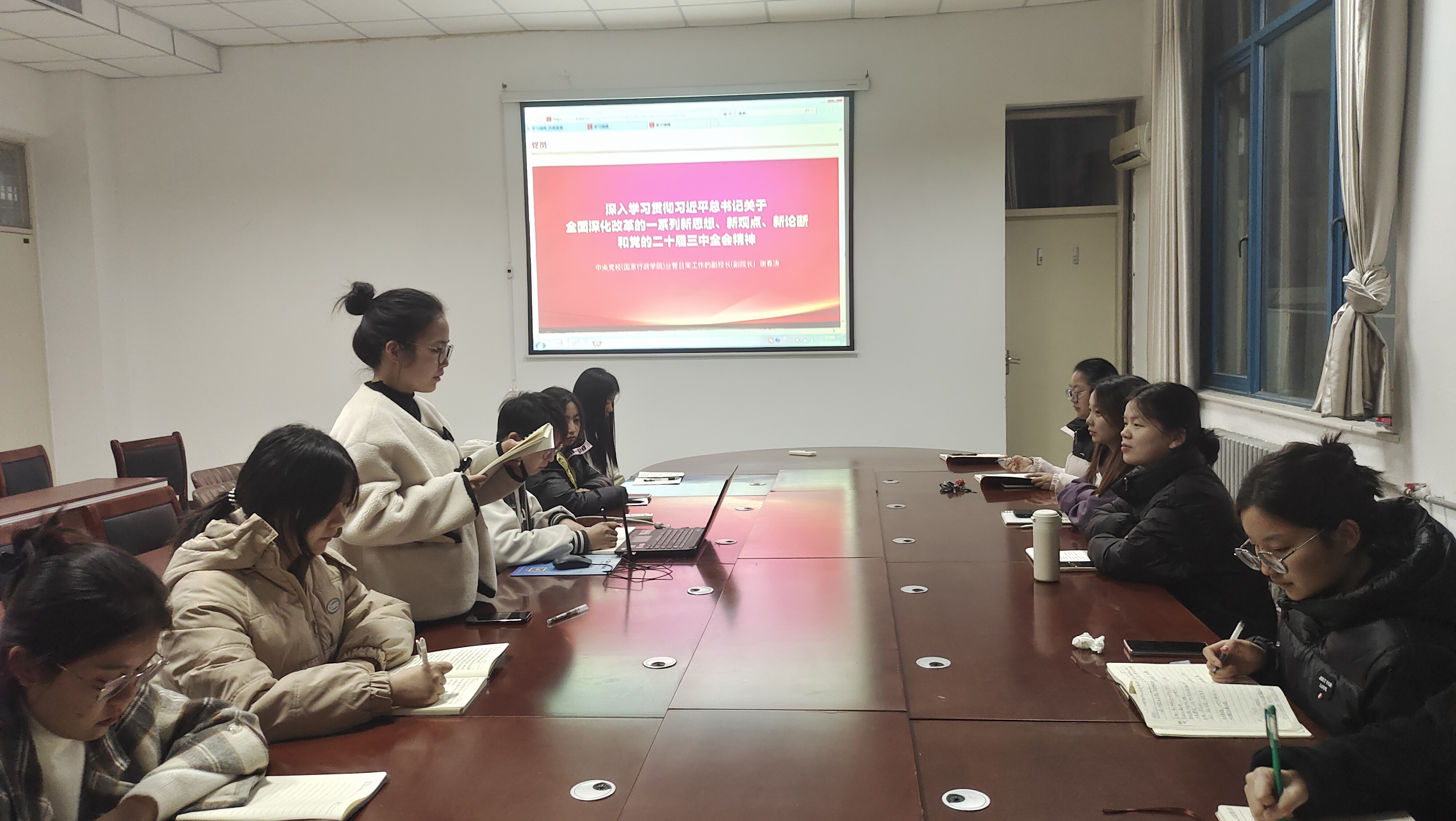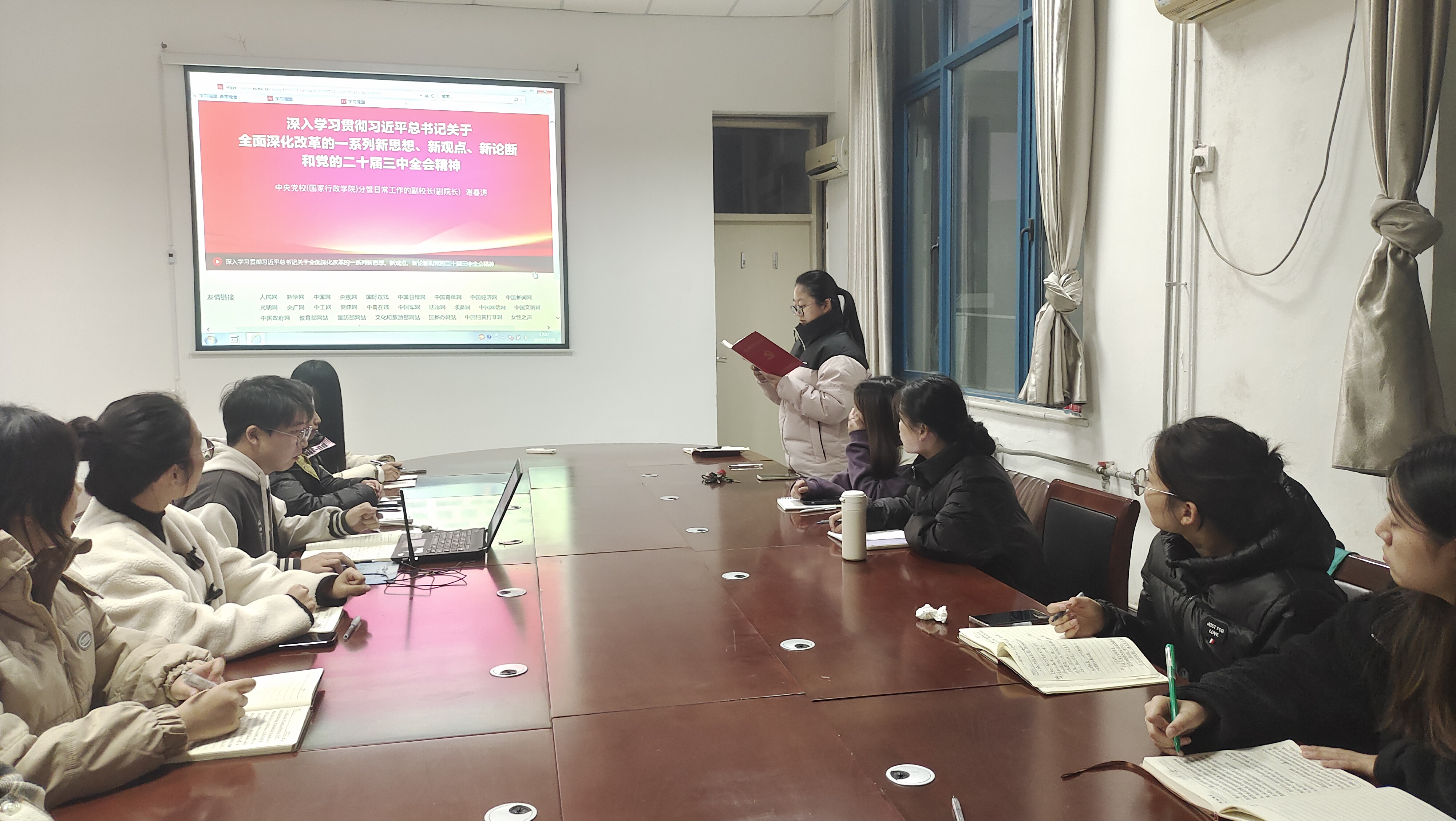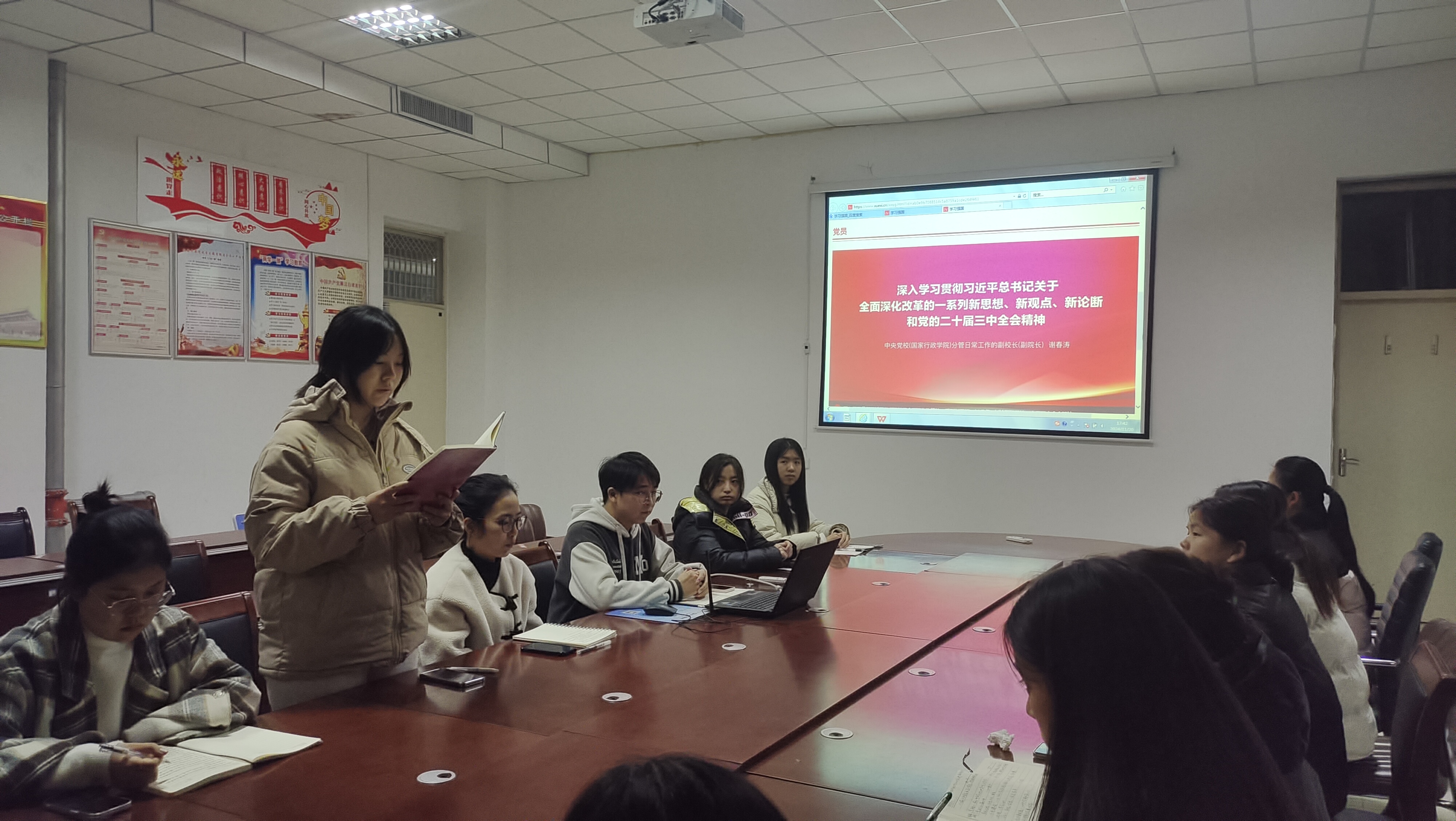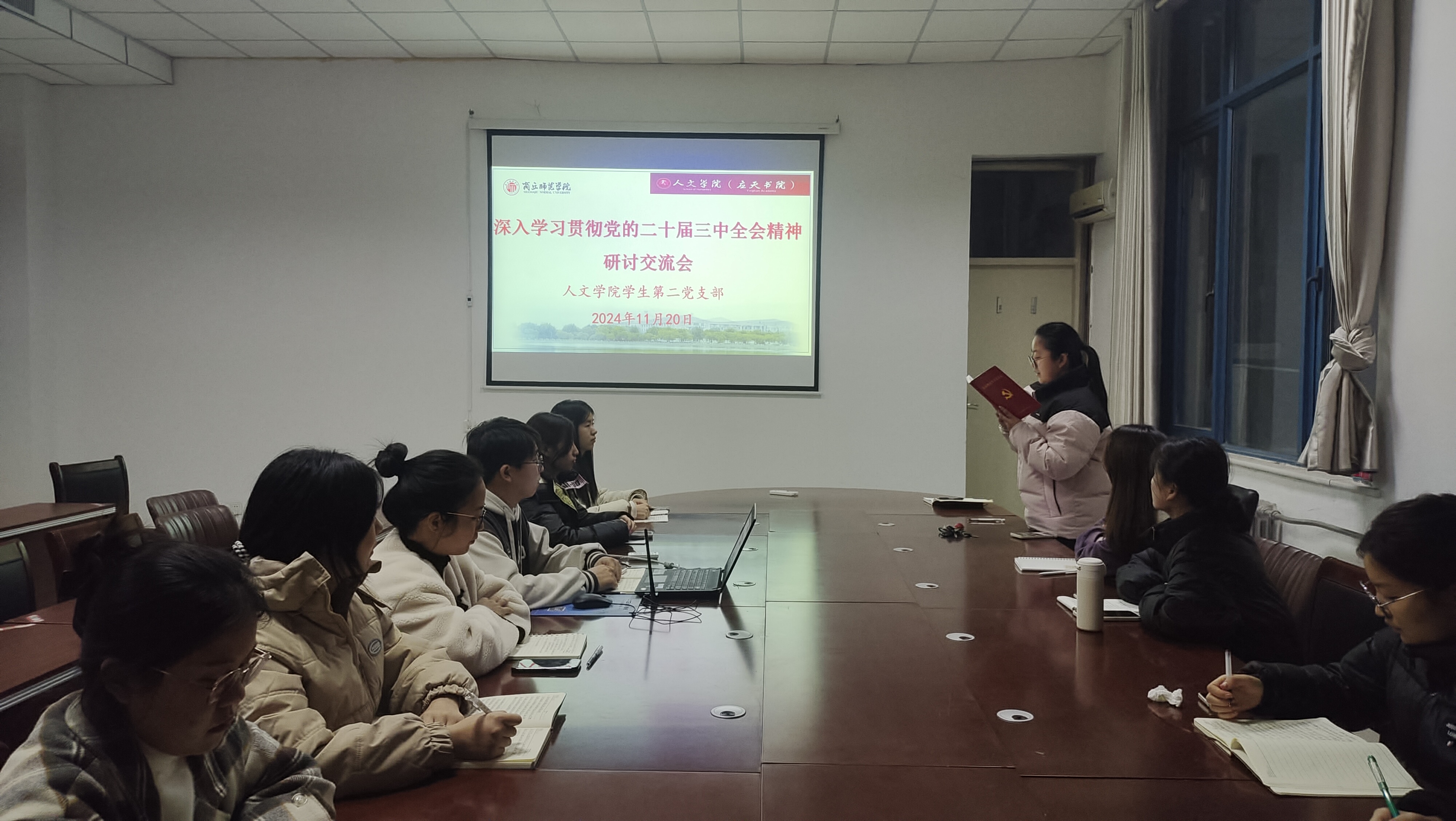 11月20日下午,诸侯快讯入口官网学生第二党支部在汉梁楼208会议室召开深入学习贯彻党的二十届三中全会精神的研讨交流会。本次会议旨在深入学习贯彻习近平总书记关于全面深化改革的一系列新思想、新观点、新论断和党的二十届三中全会精神,推动全体党员将思想和行动统一到党中央的决策部署上来,进一步激发全体党员在新时代的责任感和使命感。会议由支部书记王超主持,支部全体党员参加了此次学习活动。