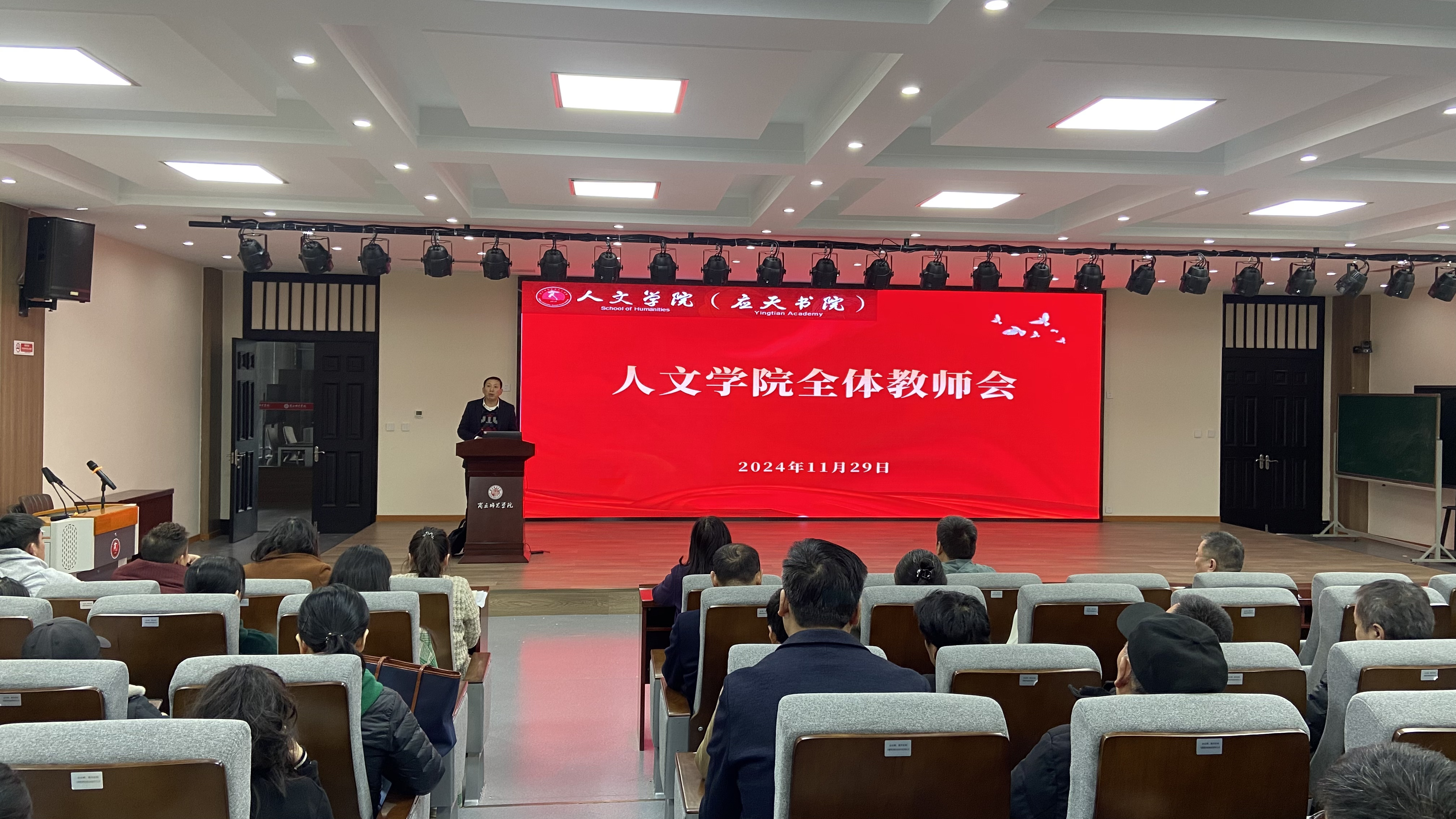 11月29日下午,诸侯快讯入口官网在汉梁楼125会议室召开全体教师大会。学院党委书记陈晓明、党委副书记卢忠雷、副院长冯志伟、李卫军、刘万华出席会议,会议由陈晓明主持。