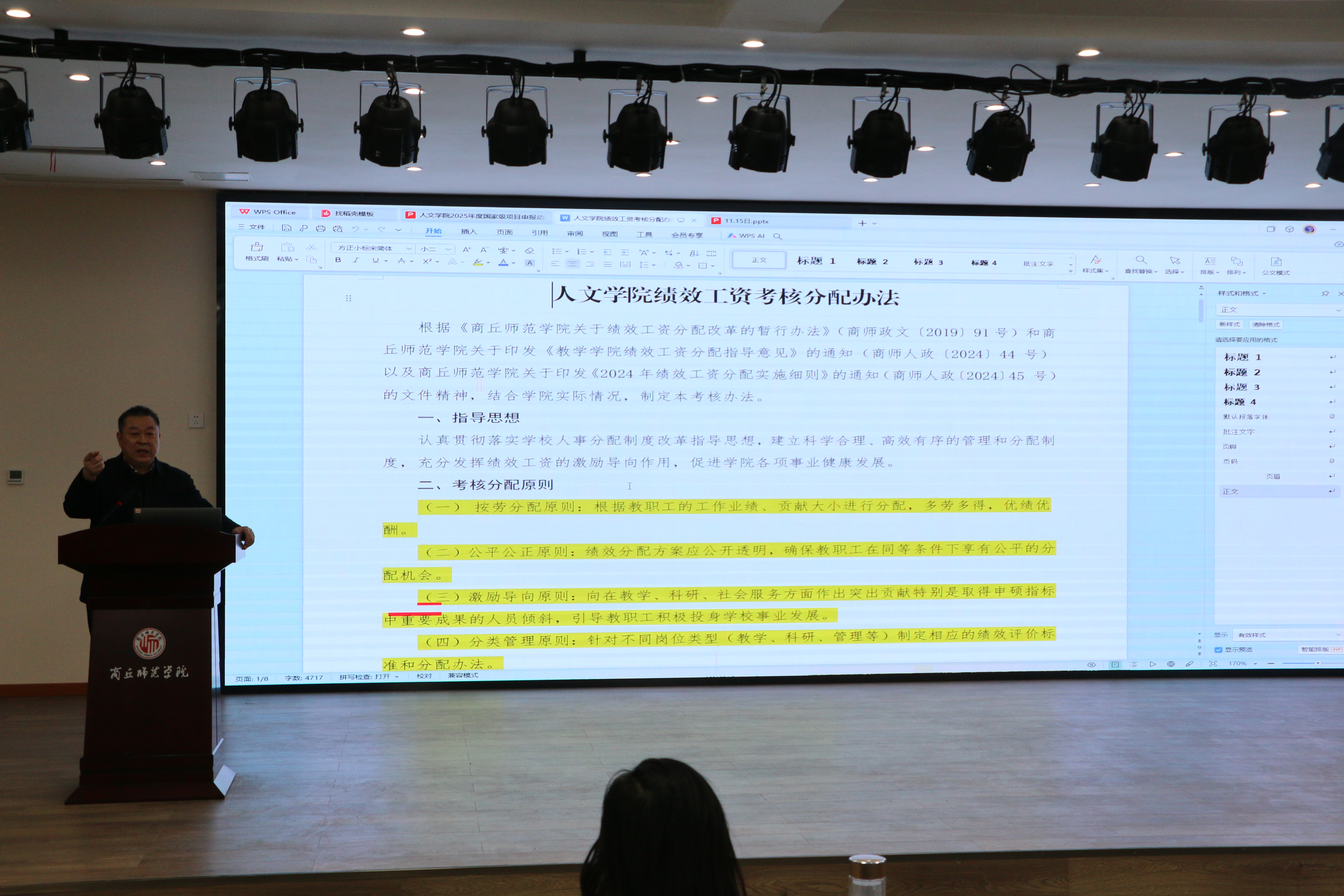 最后,陈晓明对大会进行了总结。她希望与会教职工积极参与,建言献策,并表示学院将认真吸收大家的意见和建议,不断完善绩效工资考核分配办法。学院的发展离不开每一位教职工的辛勤付出和无私奉献,希望大家继续发扬团结协作、勇于创新的精神,共同推动学院各项事业蓬勃发展。