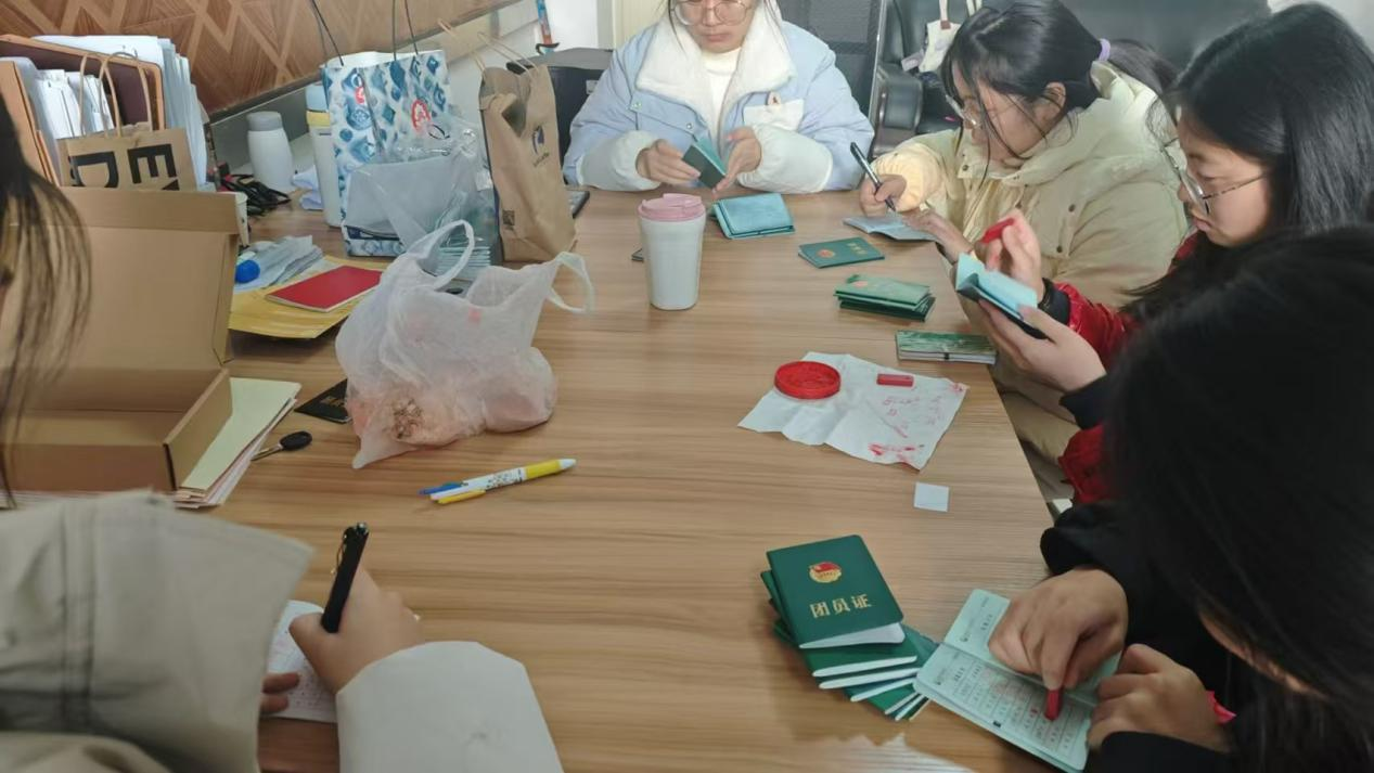 此次团籍注册工作由组织部成员对上交的团员证逐一查验后,进行盖章,对于信息不完整的团员证进行记录,为补录工作提供便利。过程中,组织部成员分工明确、认真审核、有序注册,最后清点团员证数量并归还到各团支部书记手里,本项工作圆满完成。