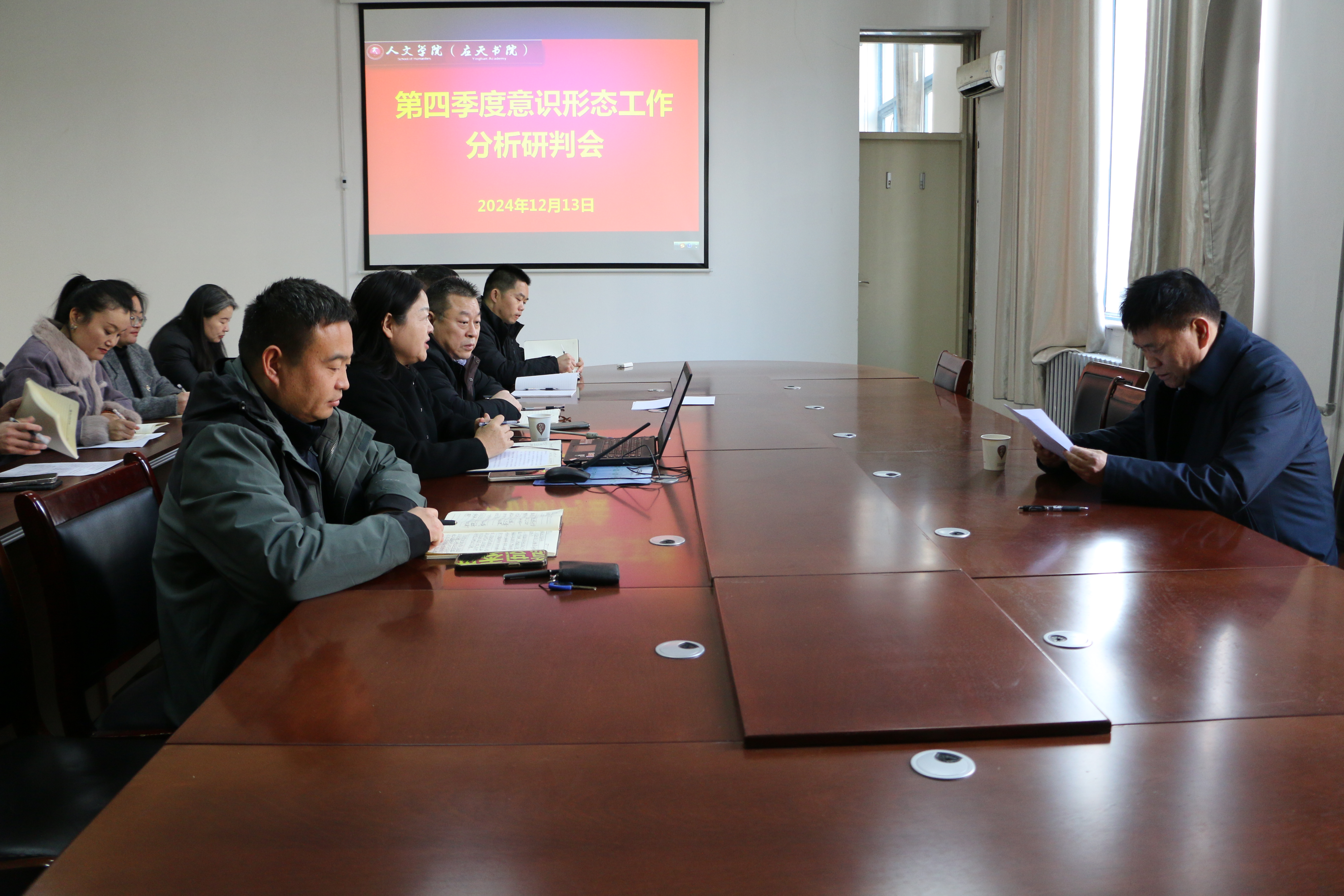 陈晓明汇报了学院第四季度意识形态工作情况,与会辅导员和教师代表分别发言,进行分析研判,提出对策建议。