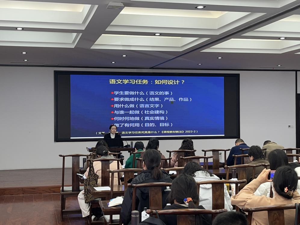 针对课标落地难题,吴玉华老师提出“反思—设计—实践”三步转化策略,建议教师对照课标诊断教学薄弱环节,设计“家乡文化探寻”“新闻采编实践”等主题化学习任务群,并通过校本教研优化课堂实施。她特别指出,教师需保持动态研读意识,关注教育前沿动态,定期结合政策变化调整教学策略,构建“学习—实践—反思”的成长闭环。参训教师纷纷表示,此次讲座既有理论高度又具实操价值,为今后落实新课标提供了清晰路径。