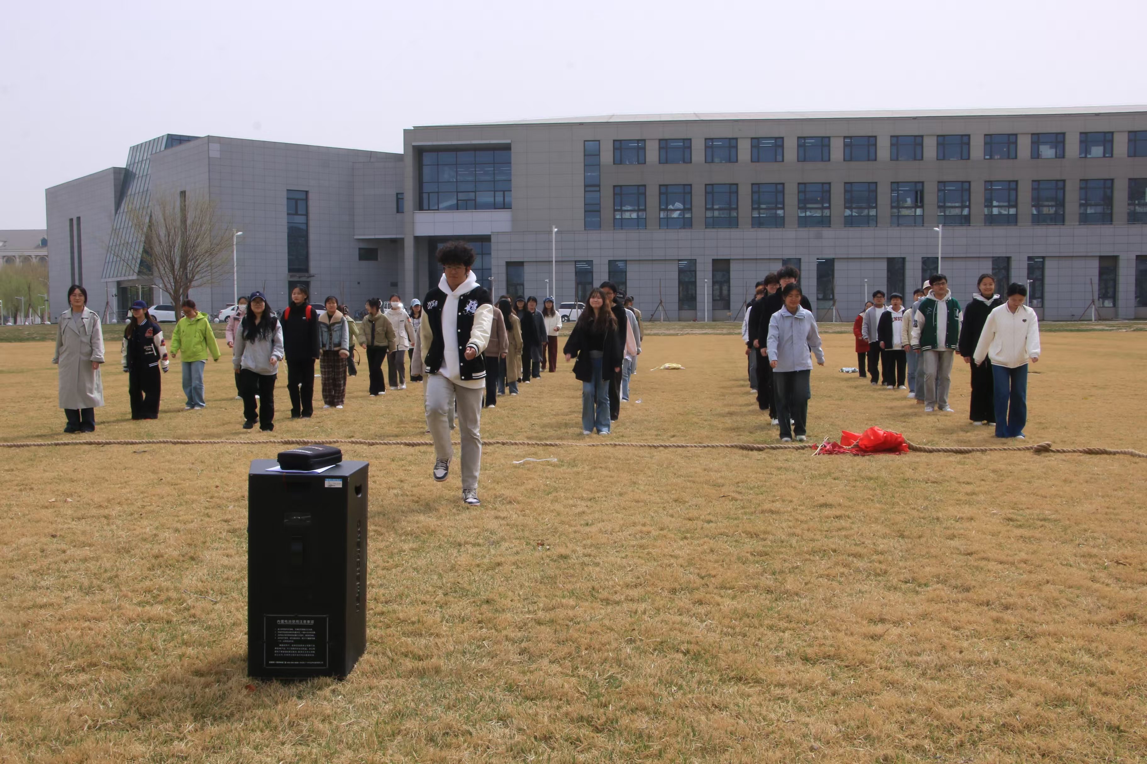 活动在欢快的广播体操下拉开了帷幕。首先,张夏楠老师发表了讲话,预祝本次活动顺利开展。接着,同学们在主持人的带领下分别进行了广播体操、击鼓传花、投壶、拔河等妙趣横生的游戏,呼喊声与掌声此起彼伏,现场轻松愉快的氛围有效缓解了同学们学习与生活中的焦虑情绪。最后,主持人公布了投壶游戏和拔河比赛优秀团队的获奖名单,并且合影留念,将今天的美好定格。