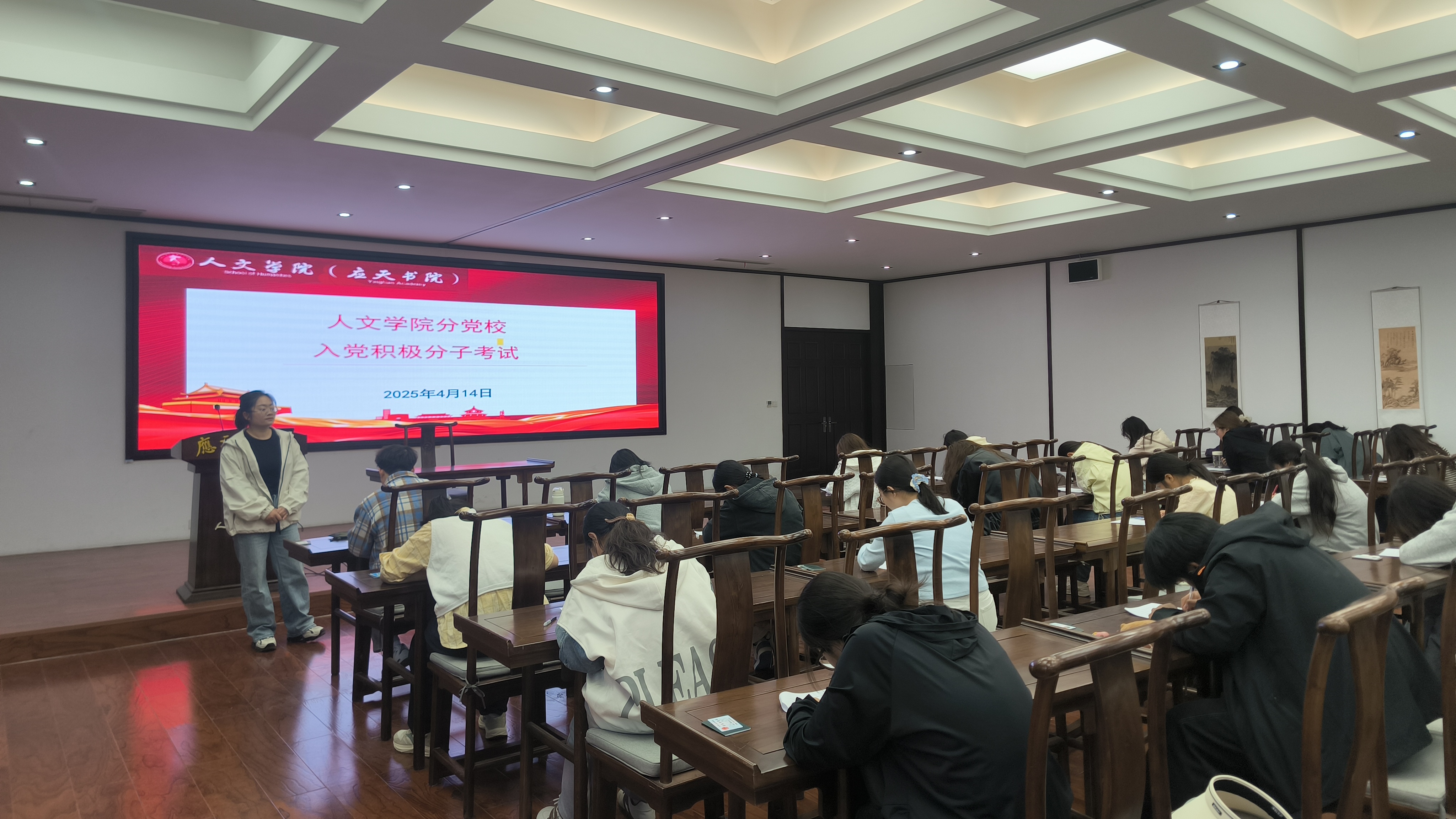 考试前,陈晓明着重强调,此次考试旨在全面检验入党积极分子的理论知识水平,同时也是对其思想觉悟的锤炼。她明确指出:“党员发展工作必须秉持‘质量优先’原则,通过考试筛选出真正信仰坚定、理论基础扎实的优秀青年。”她还鼓励同学们以党章为准则,牢记入党初心,将理论学习成果转化为服务人民的实际行动,并要求监考人员严格履行职责,确保考试的公平公正,为党组织输送“政治过硬、作风优良”的新鲜血液。