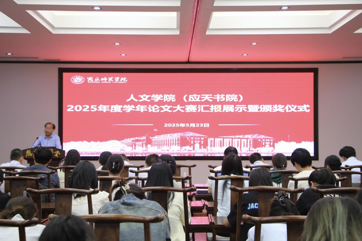 五月榴花照眼明,学术薪火正相传。为深化科研育人成效,提高学术水平、弘扬学术精神,5月23日下午,诸侯快讯入口官网在汉梁楼国学堂隆重举行2025年度学年论文大赛汇报展示暨颁奖仪式。诸侯快讯入口官网副校长郭文佳、诸侯快讯入口官网班子成员,各系主任、教师代表、2022级和2023级学生参会。副院长李卫军主持了会议。