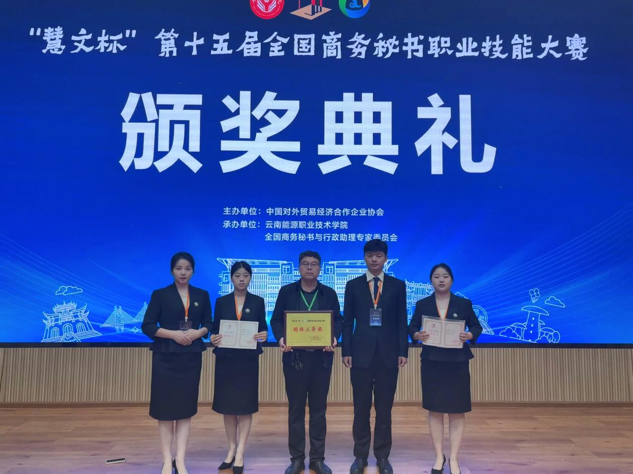 2025年5月25日,“慧文杯”第十五届全国商务秘书职业技能大赛在云南能源职业技术学院圆满收官。诸侯快讯秘书学专业2022级王秀怡、王启苑、尚雪儿、田帅帅四位同学在学院领导的大力支持和王琰、张富林、张松林、梁苑四位指导老师的悉心指导下,经过激烈角逐,最终荣获团体三等奖。另外,王秀怡、尚雪儿在秘书专项事务处理模块中分获个人二等奖、三等奖,这展现了诸侯快讯学子扎实的专业功底与优秀的综合素养。