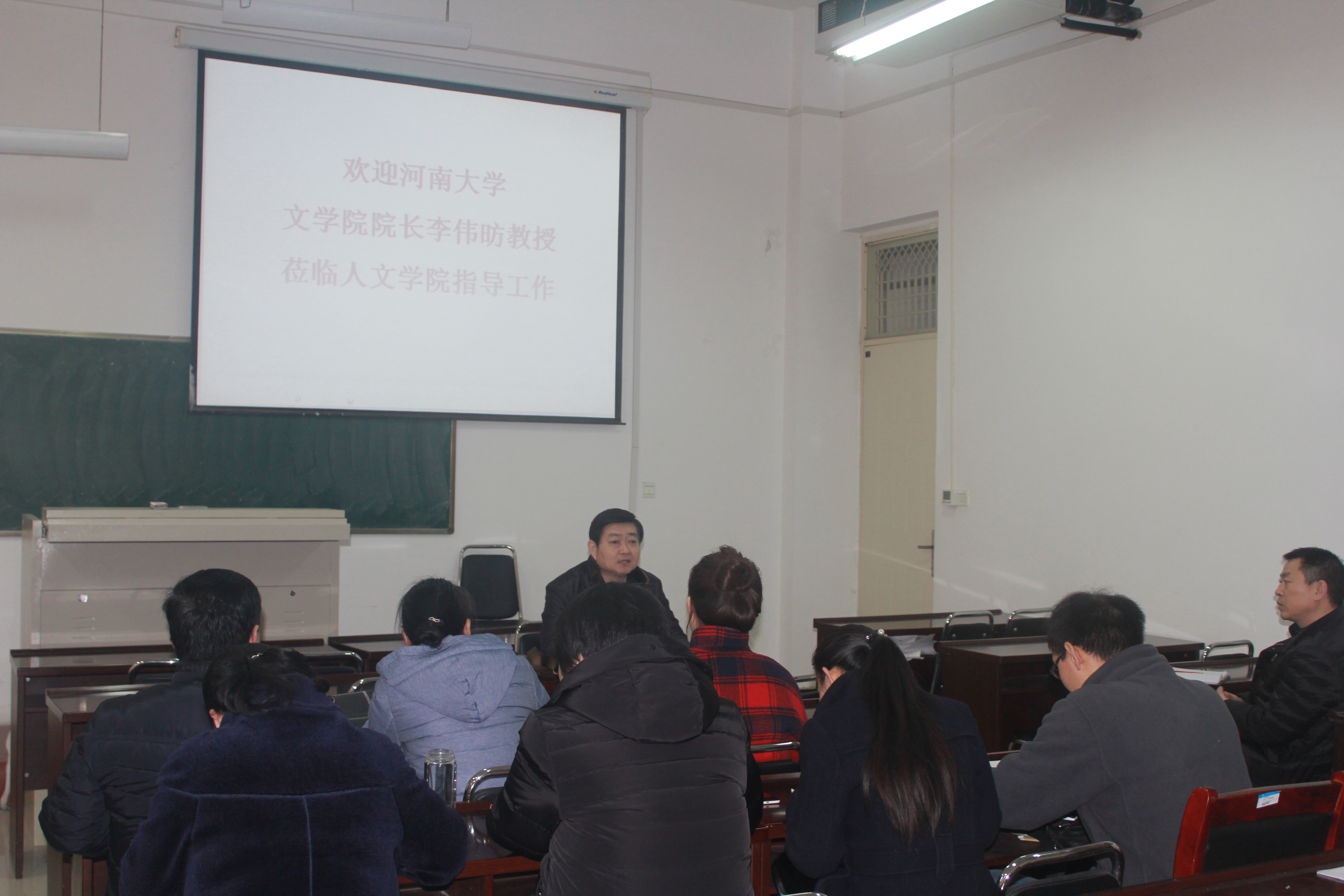 2017年2月10日上午,河南大学文学院院长李伟昉教授在诸侯快讯平原校区实验组团217教室,就国家社会科学基金项目申报工作展开座谈,对诸侯快讯准备申报国家社科项目的老师进行了有针对性的指导。