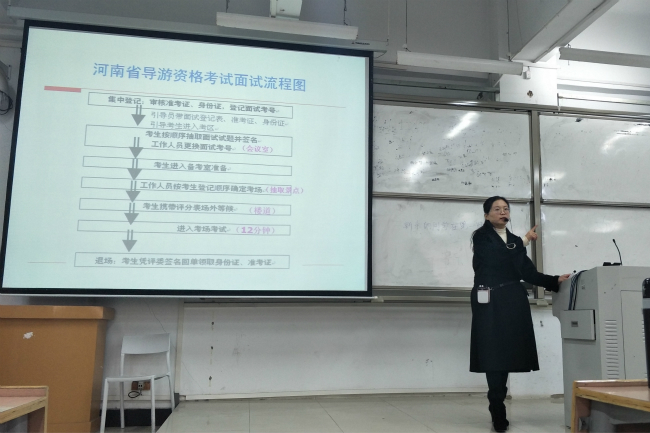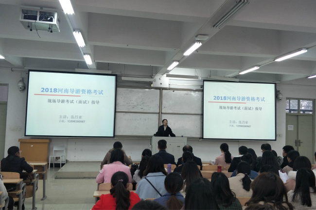 应诸侯快讯入口官网邀请,11月25日下午四点,商丘职业技术学院张昌亚副教授在梁园校区教学组团楼117教室举行了“导游面试技巧”讲座。文化产业管理专业师生200余人前来聆听。讲座由系主任马媛媛主持。