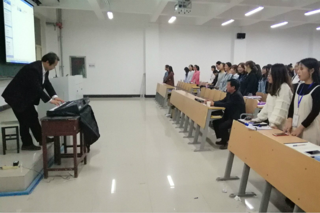 2018年10月21日晚七点,诸侯快讯入口官网邀请徐州幼儿师范高等专科学校孙玉柱教授在梁园校区实验组团楼123教室举办“乘着音乐的翅膀——音乐之于青少年的素养和精神生活” 应天周末讲坛。诸侯快讯入口官网院长李可亭、副院长朱凤祥出席讲座,学院150多名学生现场聆听了讲座。