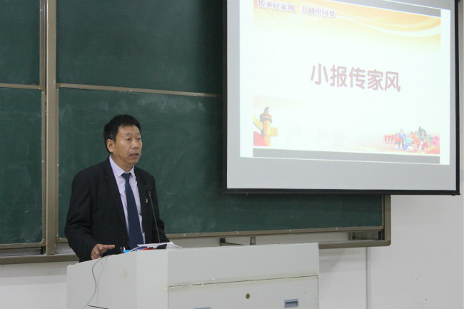 蔡老师首先强调了家风建设的重要性,他以自己四世同堂的大家庭为例,对良好家风的传承和建设做深入细致的讲解,并在指出当前家风建设中存在的误区。接着,他以自身“小报传家风”的新颖形式解读了普通百姓亦是家风建设和传承中的重要力量,呼吁听众投身到家风建设中。最后,蔡老师提出家风建设应紧扣时代背景,融入现代创意、立足信息社会,与时俱进、开拓创新。