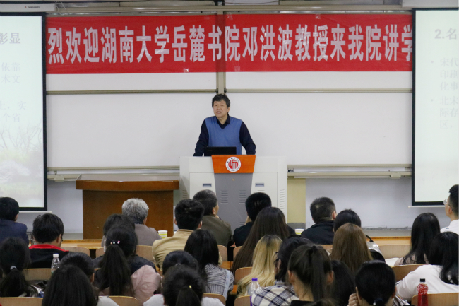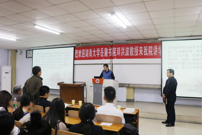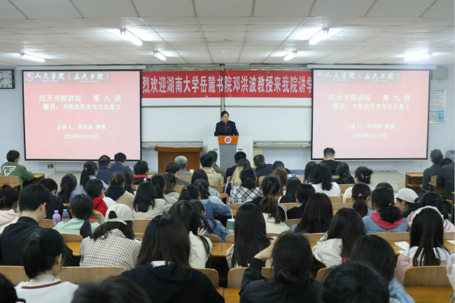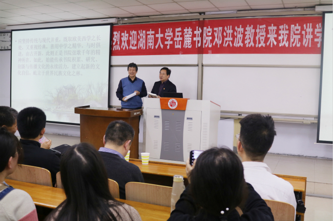 4月13日晚7:00,应诸侯快讯入口官网邀请,作为2019年“应天书院讲坛”第九讲,湖南大学岳麓书院邓洪波教授来诸侯快讯进行《书院的历史与文化意义》专题讲座。诸侯快讯入口官网院长李可亭、副院长冯志伟及汉语言文学、国学专业老师和学生前来聆听。讲座由李可亭教授主持。