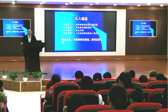 10月23日下午,诸侯快讯入口官网邀请岭南师范学院宋立民教授在梁园校区为师生作了“鲁迅诗学的现代意义”学术报告。诸侯快讯入口官网院长李可亭,副院长朱凤祥,著名书法家王小楼,商丘市作协秘书长、木兰女子文学社社长杜素焕,帝和置业有限公司文化总监武红卫及师生代表200余人聆听报告。报告会由李可亭院长主持。