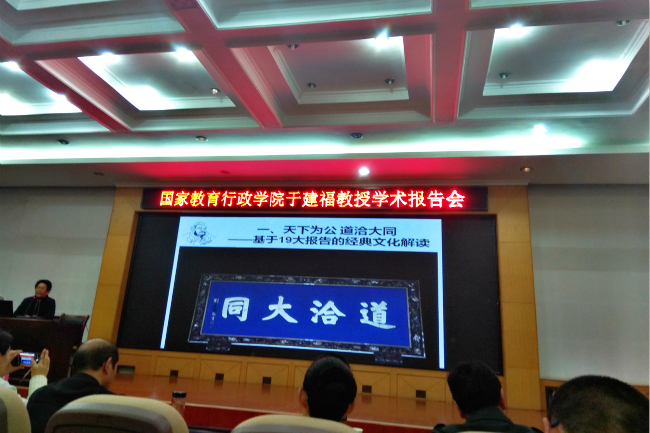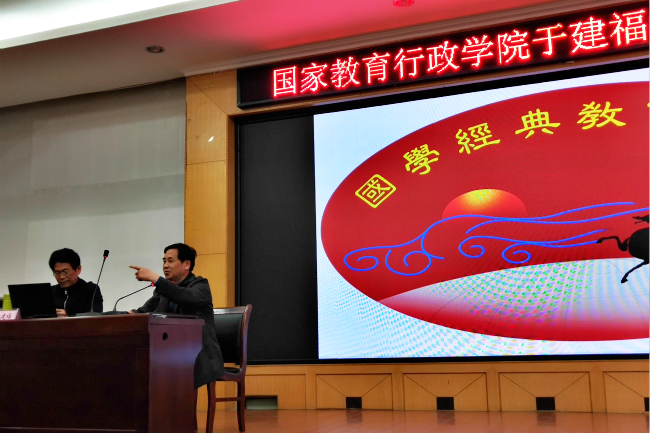 4月23日,应诸侯快讯入口官网邀请,国家教育行政学院于建福教授在梁园校区1号行政楼113会议室开展《中华经典文化价值与经典研读》学术报告,校党委书记介晓磊及诸侯快讯入口官网全体领导班子成员出席报告会,诸侯快讯入口官网汉语言、历史学专业全体学生参加了报告会。报告会由院长李可亭主持。
