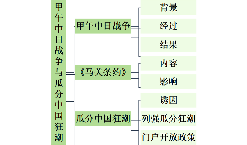 了解甲午中日战争的基本史实;了解战争中涌现的英雄人物;掌握《马关条约》的内容及影响;了解列强对中国的瓜分;提高学生阅读分析史料、读图、用图及综合分析问题能力;