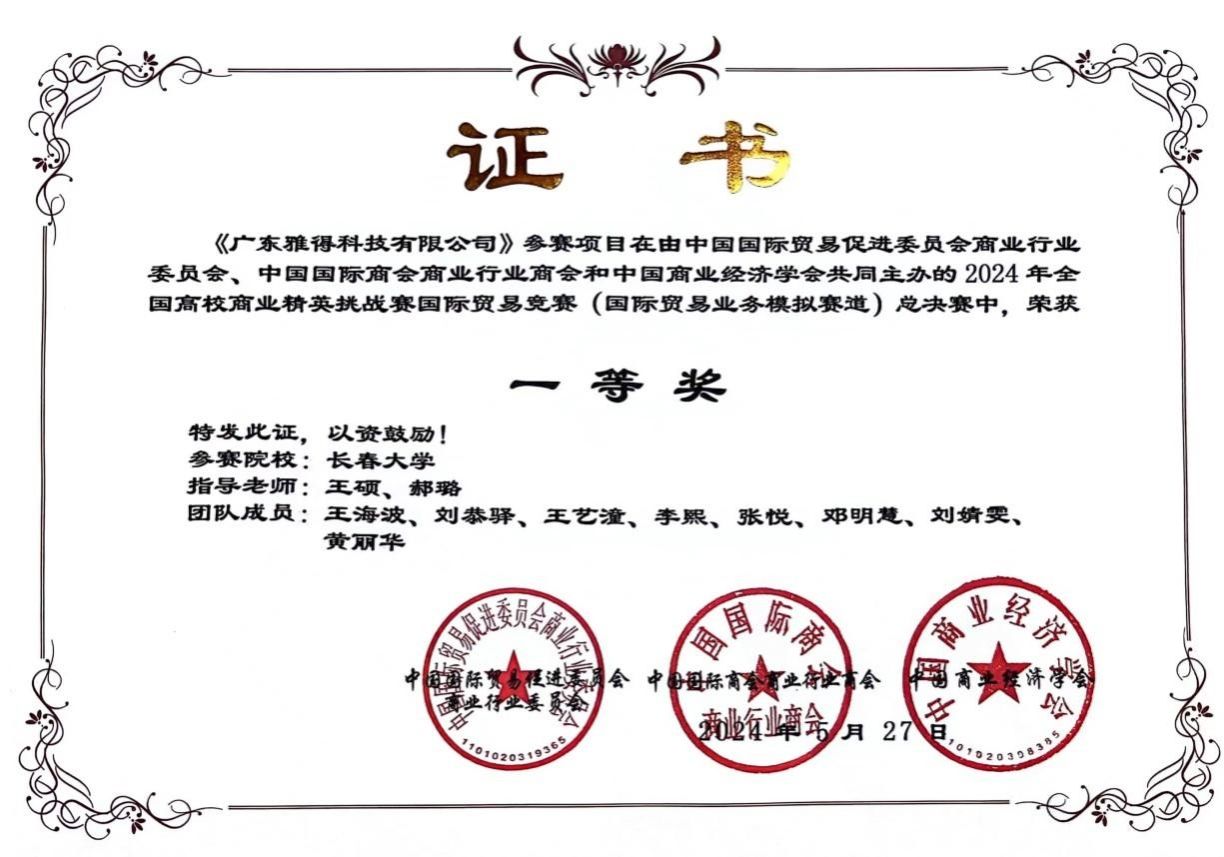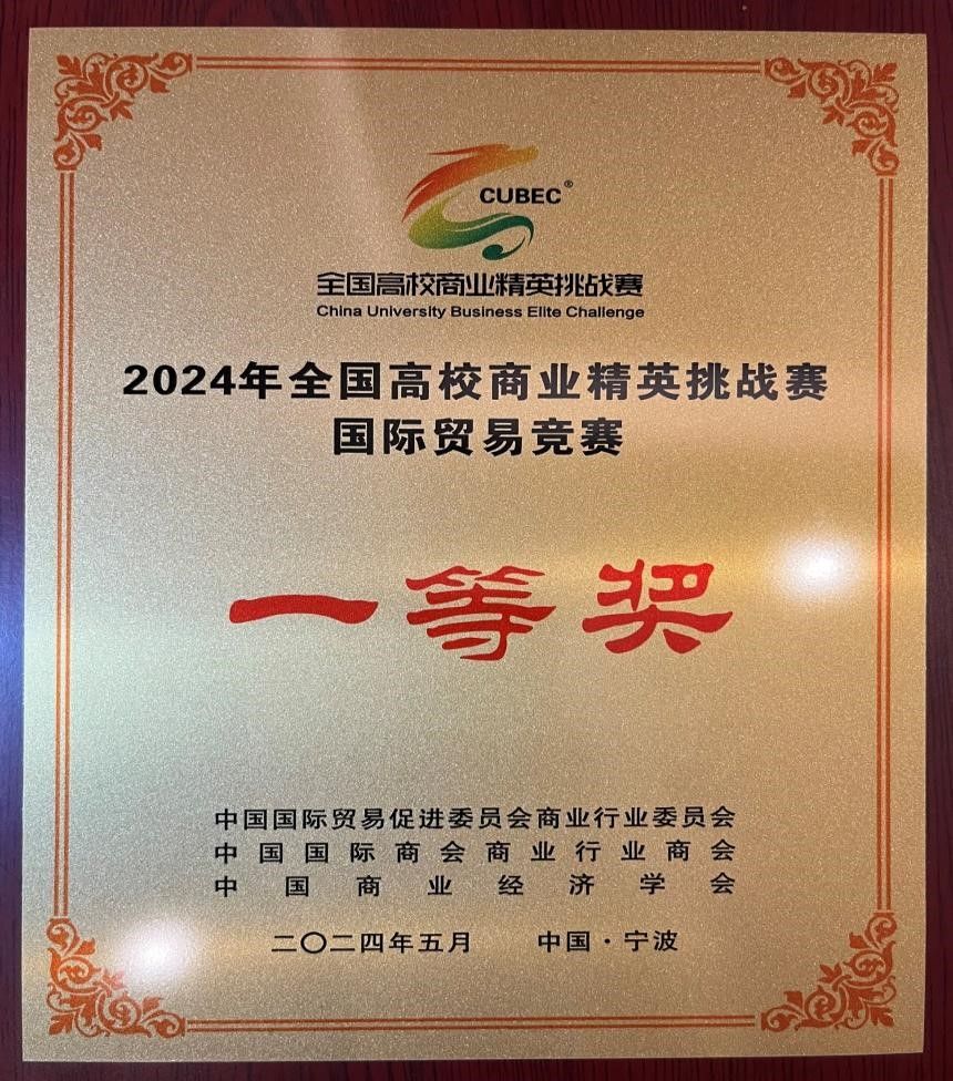 5月26日, 2024年全国高校商业精英挑战赛国际贸易竞赛(国际贸易业务模拟赛道)全国总决赛在宁波举行。本次竞赛吸引了来自全国各地高校的众多学生积极参与,来自全国180所高校,341个团队,3000余名师生共同参加。经过激烈的角逐,由我院学生王海波、王艺潼、李熙、刘恭驿、邓明慧、黄丽华、刘静雯、张悦组建的参赛团队,在国际经济与贸易系王硕、郝璐两位教师的指导下,获得全国总决赛一等奖。