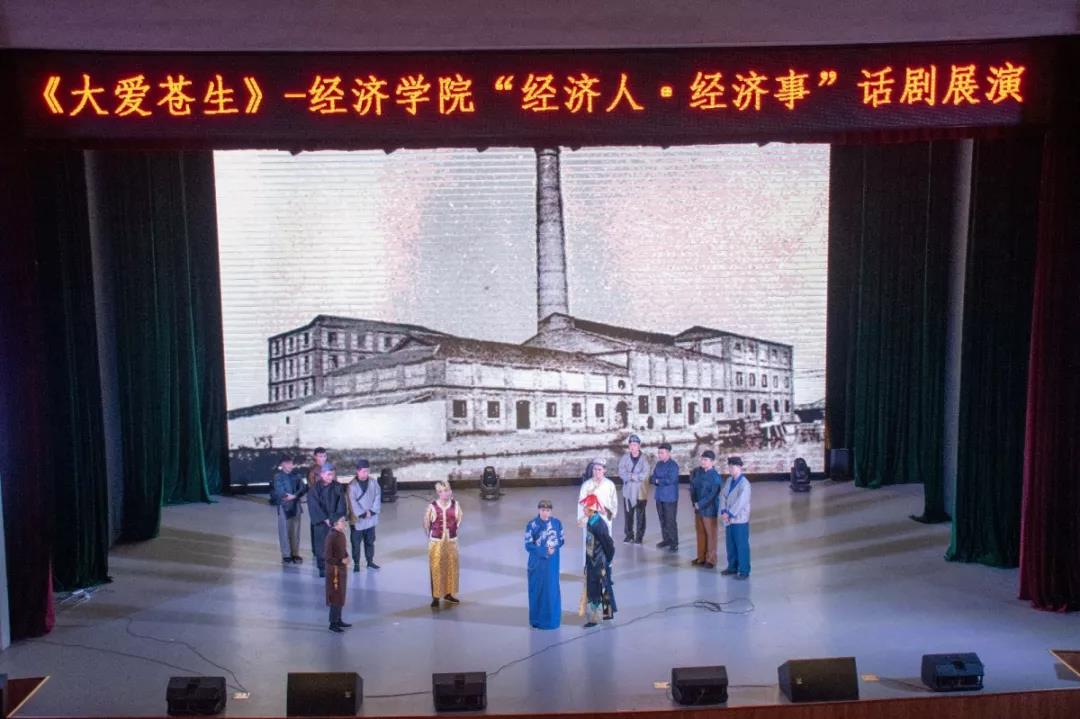 “经济人·经济事”话剧是学校校园文化精品建设项目,由学生自编、自导、自演,以历史、经济、文化为载体,将所学专业知识与话剧有效结合,探索了课堂教学与校园文化建设的新思路,为推动“三全”育人工程起到积极作用。《大爱苍生》讲述了清末状元张謇目睹封建官场的腐朽后,辞官回家创办大生纱厂,实业救国的故事,向我们展示了那个年代经济人不屈向上的坚定意志,鼓励着我们这一代经济人,不忘经济人的使命和灵魂。