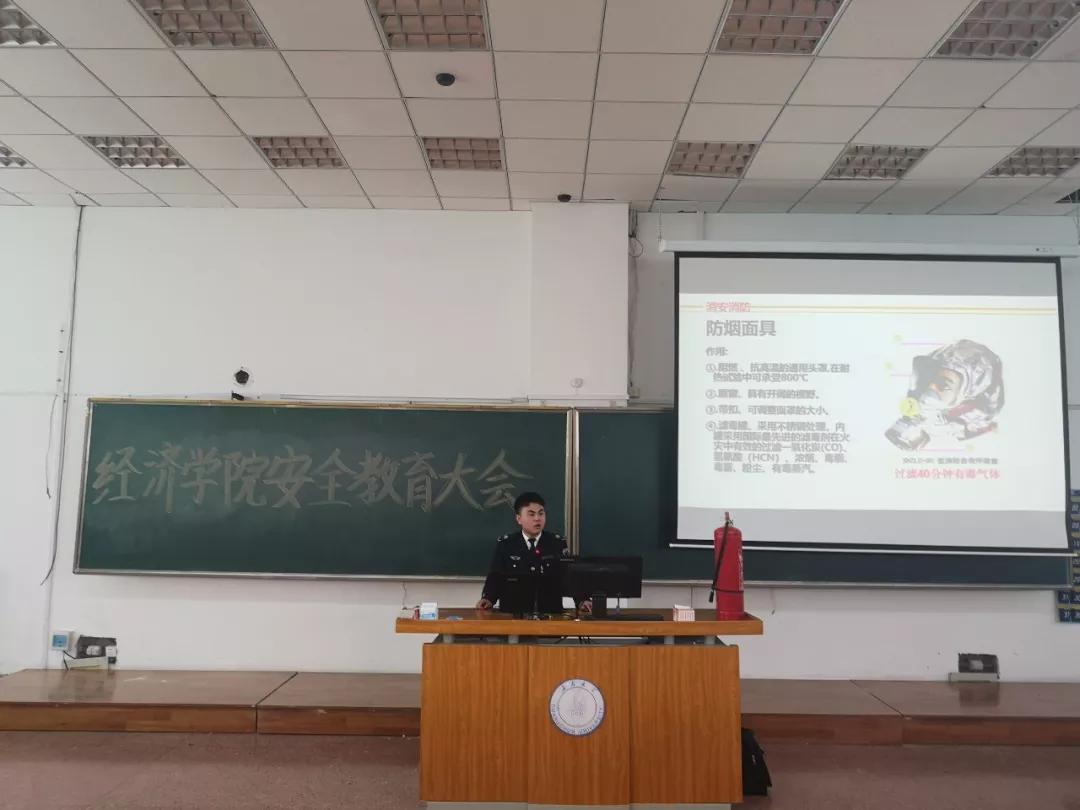 为进一步加强我院师生消防安全意识,提高自我应变和防护能力,3月27日,学校安全处与我院在第六教学楼大阶梯三教室联合举行了安全教育大会。吉林省消安消防知识宣传中心教官徐依樊担任主讲,我院部分教师、主要学生干部及寝室长参加了此次会议。