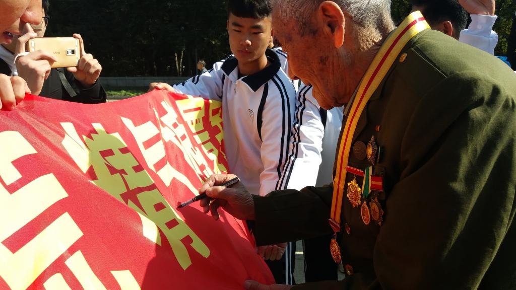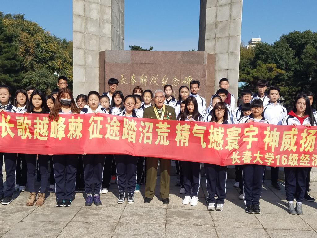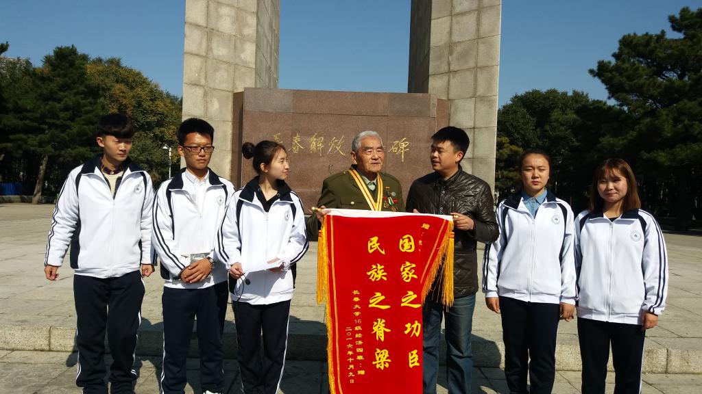 此次活动我们荣幸地邀请到了抗战老兵史保东,向同学们讲述战争年代的故事,宣扬时代精神,辅导员王齐老师亲切迎接老兵并赠予锦旗,老兵与同学们合影留念。