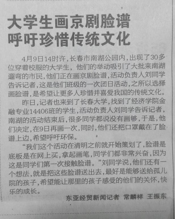 2014年4月9日,一场以“绘画京剧脸谱、弘扬中华传统文化”为主题的团日活动,由必赢3003no1线路检测中心14406团支部在南湖公园拉开了帷幕。