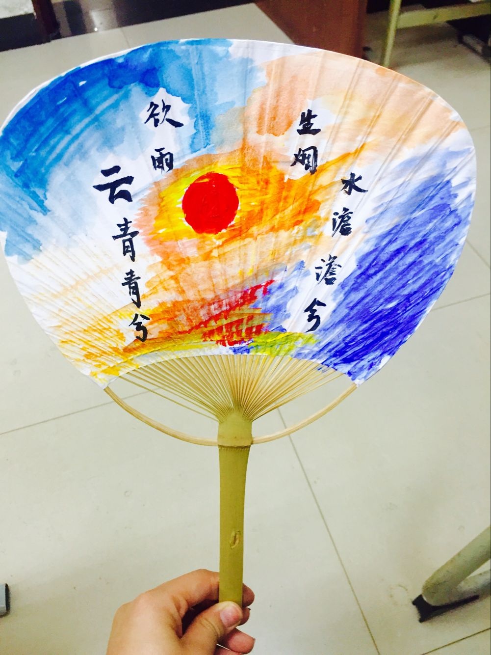 同学们根据各自的理解与想象,通过颜料和笔墨,将诗歌或图画展现在扇子上。