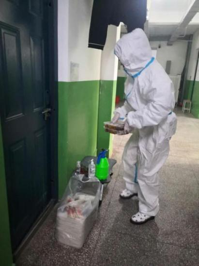 疫情当前,辅导员老师每天安抚我们的情绪,督促我们量体温,让我感受到老师们的付出。在学院需要志愿者时,我毫不犹豫地报名参加。发饭时厚厚的防护服裹着真的很难受,但是我们还是坚持了下来。老师们每天都给我们送来很多物资,一遍又一遍地强调防护安全事项。我想这次志愿者经历会让我终生难忘,虽然很累很害怕,但是想想为同学们送去了需要的物资和热腾腾的饭菜,为学校防疫做出一点贡献,我的心里就充满了自豪!