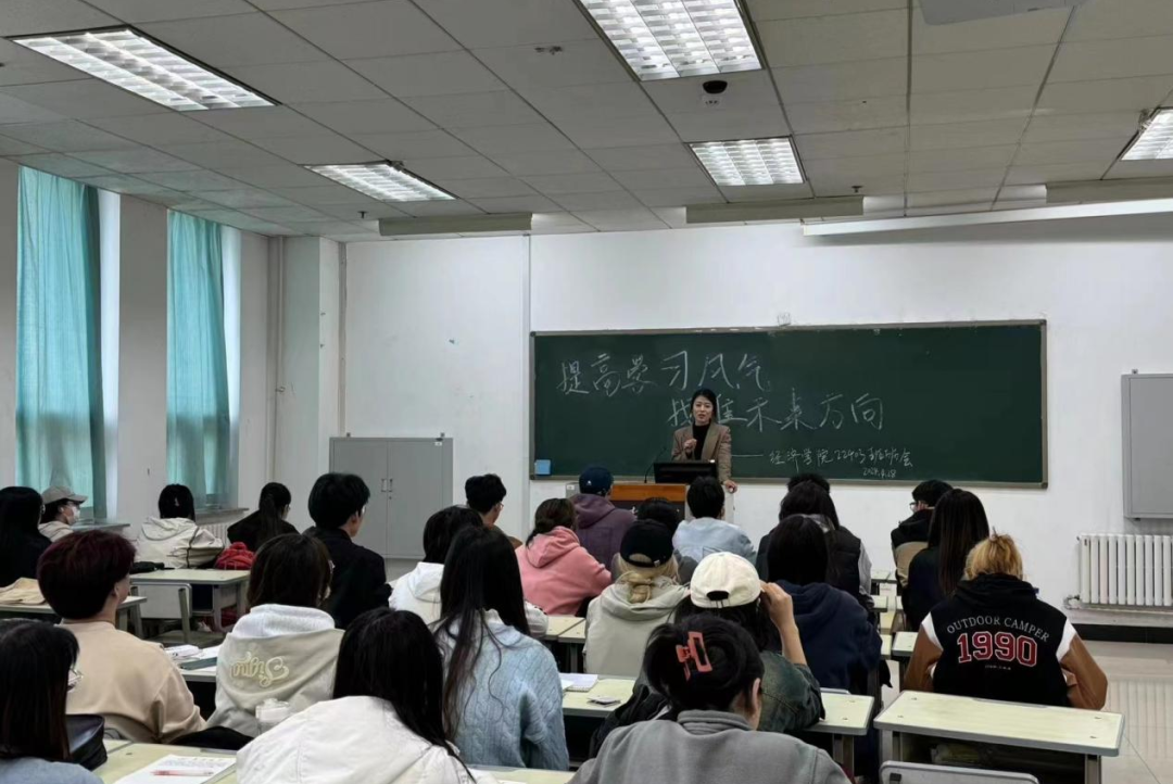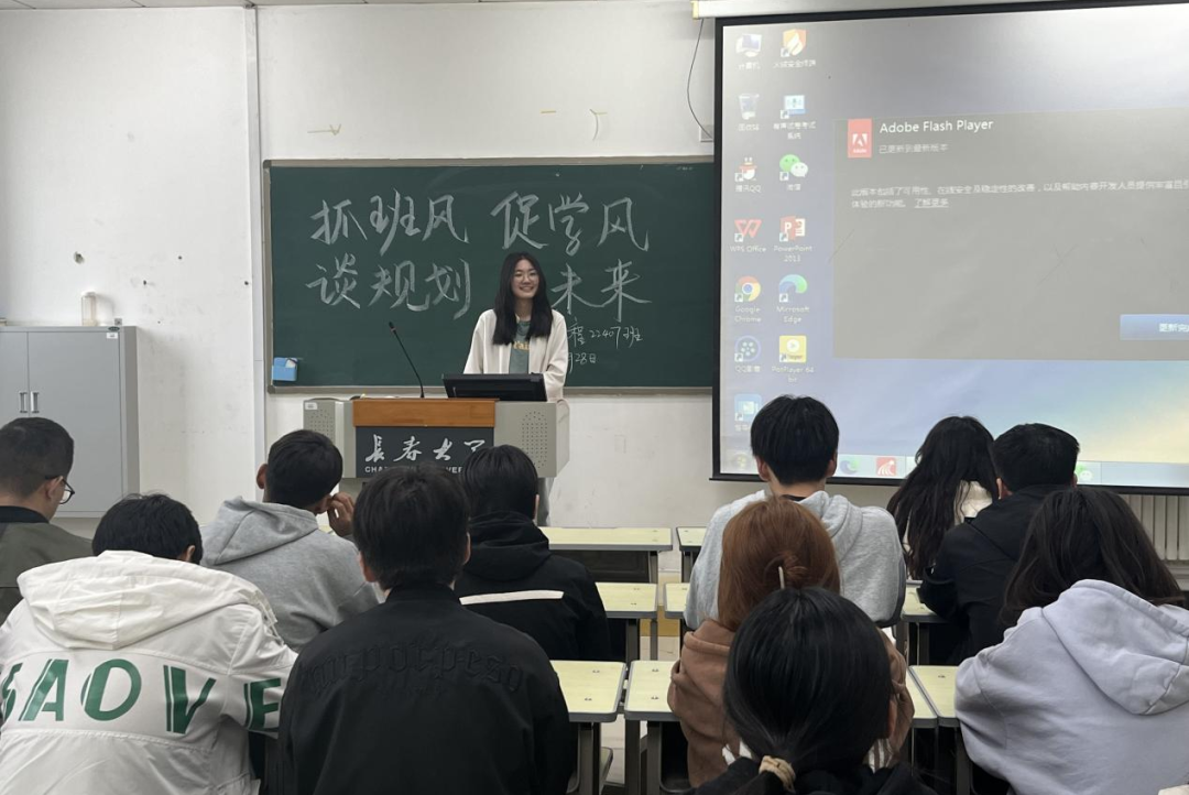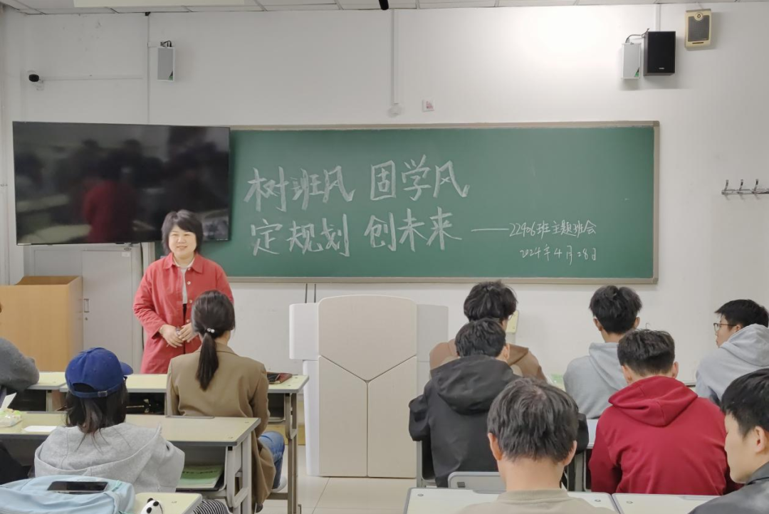 班会上,学生围绕班风建设、学风促进以及个人规划三个方面进行阐述,大家在交流的过程中分析自身存在的问题以及未来的努力方向。学业导师和班主任分别从专业学习、考研、考公、考英语四六级等方面对学生进行指导并提出合理的建议。辅导员从党团建设、班级建设、团队凝聚力等方面着重强调了班风、学风、考风的重要性,并通过生动的案例、深入的分析、引导学生们深入思考自己的兴趣、优势以及未来的职业发展,鼓励学生积极面对挑战,敢于尝试新鲜事物,尽早明确自己的职业目标。