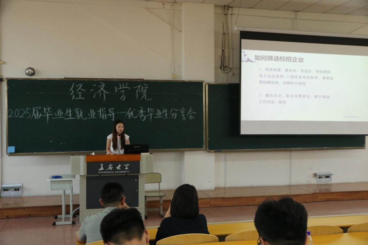 在分享会上,杨朕同学结合其应聘牧原食品股份有限公司的经历,分享了求职过程中心态调整与选择策略,强调了保持积极与自信的重要性,并为大家总结了简历与求职信的撰写要点。王念文同学结合备考中国农业银行甘肃省分行的经历,分享了银行求职的各个环节和其在在校期间银行实习的感受,鼓励同学们充分准备,相信自己。