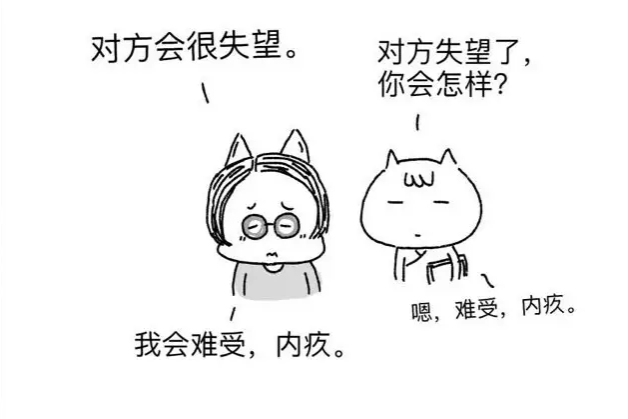 自我虚弱是难以拒绝的根本原因。所谓的自我虚弱是一种心理上认为自己无价值感。觉得自己的想法、感受都是不重要的,于是会导致失去了对自己的“最终评价权”。我是无权说自己好的,我是好是坏,只有别人说了算。一旦表达拒绝,对方说我小气、没人情味,那就说明我是一个坏人。所以会特别在意别人的评价,难以承受对方的误解。因此我们会习惯性地依赖别人的需求来肯定自己的价值。